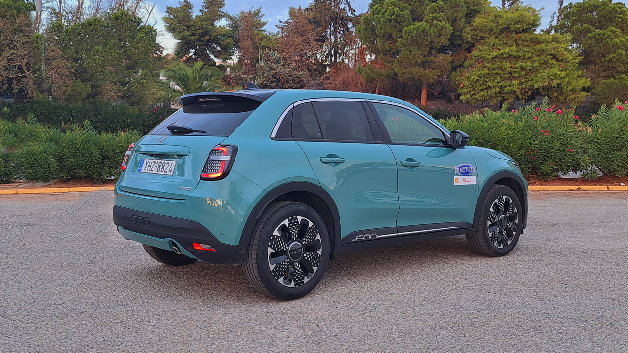 Η πρώτη μας επαφή με το νέο μοντέλο έγινε στην έκδοση με το υβριδικό σύστημα των 100 ίππων που γνωρίζουμε και από άλλα μοντέλα του ομίλου Stellantis. Εξωτερικά, είναι εμφανής η προσπάθεια της εταιρείας να δημιουργήσει ένα μεγαλύτερο μοντέλο που διατηρεί ρετρό στοιχεία που συναντάμε στο 500άκι. Για παράδειγμα, βλέπουμε τα στρογγυλά φωτιστικά σώματα, ενώ οι σχεδιαστικές γραμμές είναι “απαλές” δημιουργώντας όμορφες καμπύλες. Ασφαλώς, πρόκειται για ένα SUV μοντέλο, οπότε δεν απουσιάζουν crossover στοιχεία, όπως για παράδειγμα η αυξημένη απόσταση από το έδαφος και οι πλαστικές επενδύσεις στο κατώτερο τμήμα του αμαξώματος. Αναφορικά με τις διαστάσεις, το μεγαλύτερο πλέον μοντέλο στη γκάμα της ιταλικής εταιρείας έχει μήκος 4.171 χλστ., πλάτος 1.781 και ύψος 1.523 χλστ.