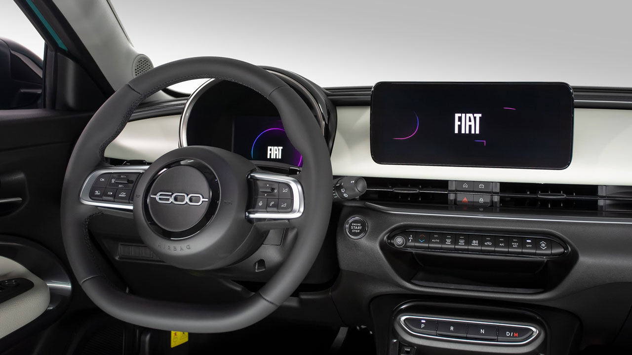 Πάμε και στο εσωτερικό, το οποίο διακρίνεται για την μοντέρνα και ευχάριστη σχεδίασή του, όπως ακριβώς συμβαίνει και Jeep Avenger, “αδερφάκι” με το οποίο μοιράζεται πληθώρα στοιχείων. H πλούσια έκδοση la Prima εφοδιάζεται με σύστημα infotainment Uconnect που συνδυάζει κεντρική οθόνη αφής μεγέθους 10,25’’ και ψηφιακό πίνακα οργάνων πίσω από το τιμόνι (μέγεθος 7 ιντσών) για την προβολή όλων των απαραίτητων πληροφοριών. Εννοείται ότι το σύστημα ενημέρωσης και ψυχαγωγίας εξασφαλίζει πλήρη συνδεσιμότητα μέσω και των εφαρμογών mirroring, Android Auto και Apple CarPlay. Από τον πλούσιο εξοπλισμό δεν απουσιάζει επίσης η κάμερα οπισθοπορείας με drone view. Λίγο κάτω από την κεντρική οθόνη, συναντάμε τα “φυσικά” κουμπιά του αυτόματου σασμάν (e-DCT6), τα οποία εξοικονομούν χώρο, ο οποίος αξιοποιείται με τον βέλτιστο τρόπο. Έτσι, ανάμεσα στα καθίσματα οδηγού και συνοδηγού υπάρχουν πρακτικές θήκες για μικροαντικείμενα και ποτηροθήκες μεταβαλλόμενου μεγέθους. Η καμπίνα μπορεί να φιλοξενήσει άνετα τέσσερις ενήλικες ή μία πενταμελής οικογένεια, προσφέροντάς τους 15 λίτρα αποθηκευτικού χώρου για μικροπράγματα. Πάμε και στον διαθέσιμο χώρο για τις αποσκευές, ο οποίος φέρει και διαχωριστικό που κάνει τον χώρο φόρτωσης επίπεδο (ιδιαίτερα πρακτικό όταν δεν χρειαζόμαστε όλο τον διαθέσιμο όγκο του πορτμπαγκάζ). Στις περιπτώσεις βέβαια που πρέπει να γίνει μία πλήρης φόρτωση, το Fiat 600 προσφέρει όγκο 385 λίτρων. Όσο για την ποιότητα, στο σύνολο της καμπίνας του ιταλικού μοντέλου συναντάμε σκληρά στην υφή πλαστικά, αλλά η συναρμολόγηση είναι ιδιαίτερα προσεγμένη.