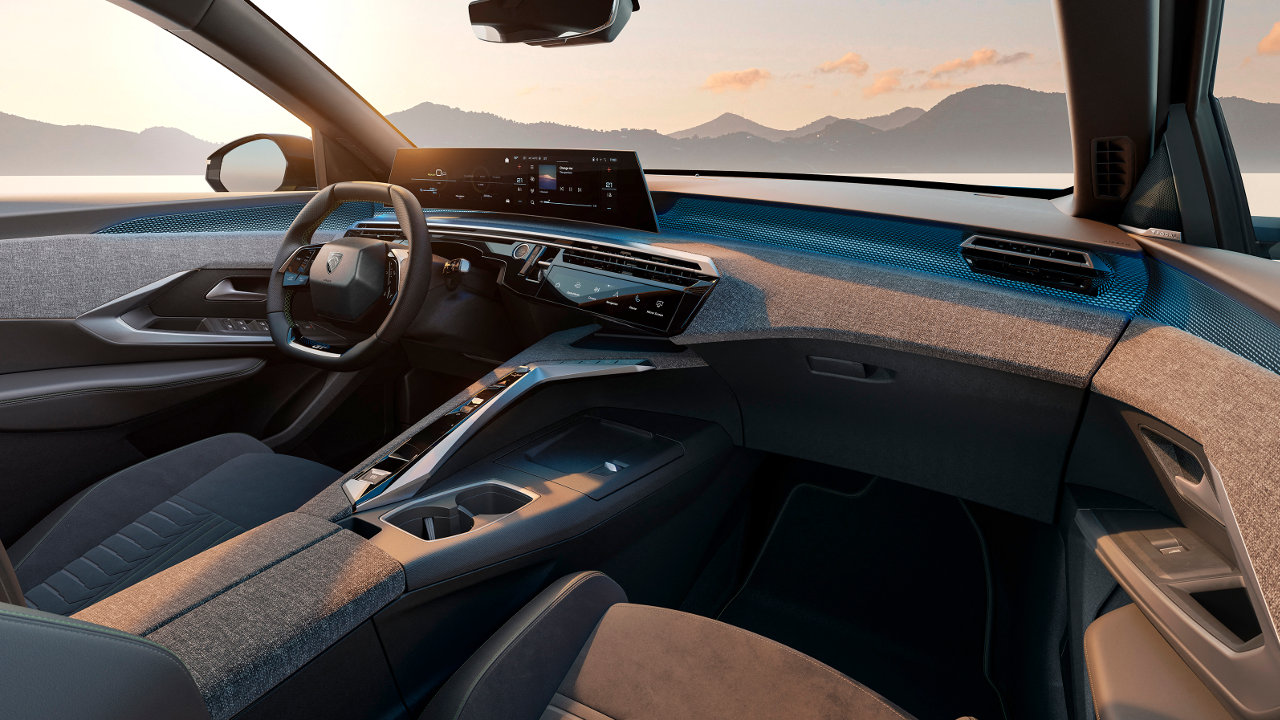 Περνώντας στο εσωτερικό, παρατηρούμε το εντελώς νέο i-COCKPIT. Ουσιαστικά, πρόκειται για ένα ενιαίο πάνελ, με μία οθόνη σε ρόλο πίνακα οργάνων και μία οθόνη αφής να δημιουργούν μία μεγάλη, κυρτή επιφάνεια. Η ενιαία οθόνη υψηλής ευκρίνειας έχει μέγεθος 21 ιντσών (προαιρετικός εξοπλισμός), ενώ στην βασική έκδοση υπάρχουν δύο ξεχωριστές οθόνες 10 ιντσών η κάθε μία. Όπως συμβαίνει σε όλα τα μοντέλα της Peugeot, έτσι κι εδώ, ο οδηγός θα πρέπει να “παίξει” λίγο με τη θέση του τιμονιού, ώστε να μην κρύβεται πολύ η οθόνη που βρίσκεται πίσω από το τιμόνι. Λίγο πιο χαμηλά στην κεντρική κονσόλα, συναντάμε και τα γνωστά πλέον i-Toggles, τα πλήρως προσαρμόσιμα κουμπιά αφής που μπορούν να προγραμματιστούν για να παρέχουν γρήγορη πρόσβαση σε 10 από τις αγαπημένες λειτουργίες του χρήστη. Στην έκδοση GT της δοκιμής, οι ανέσεις θύμιζαν περισσότερο 5άστερο ξενοδοχείο παρά αυτοκίνητα. Ενδεικτικά θα αναφερθώ μόνο στα καθίσματα, τα οποία είναι θερμαινόμενα, αεριζόμενα, ηλεκτρικά ρυθμιζόμενα και φέρουν και προγράμματα μασάζ.