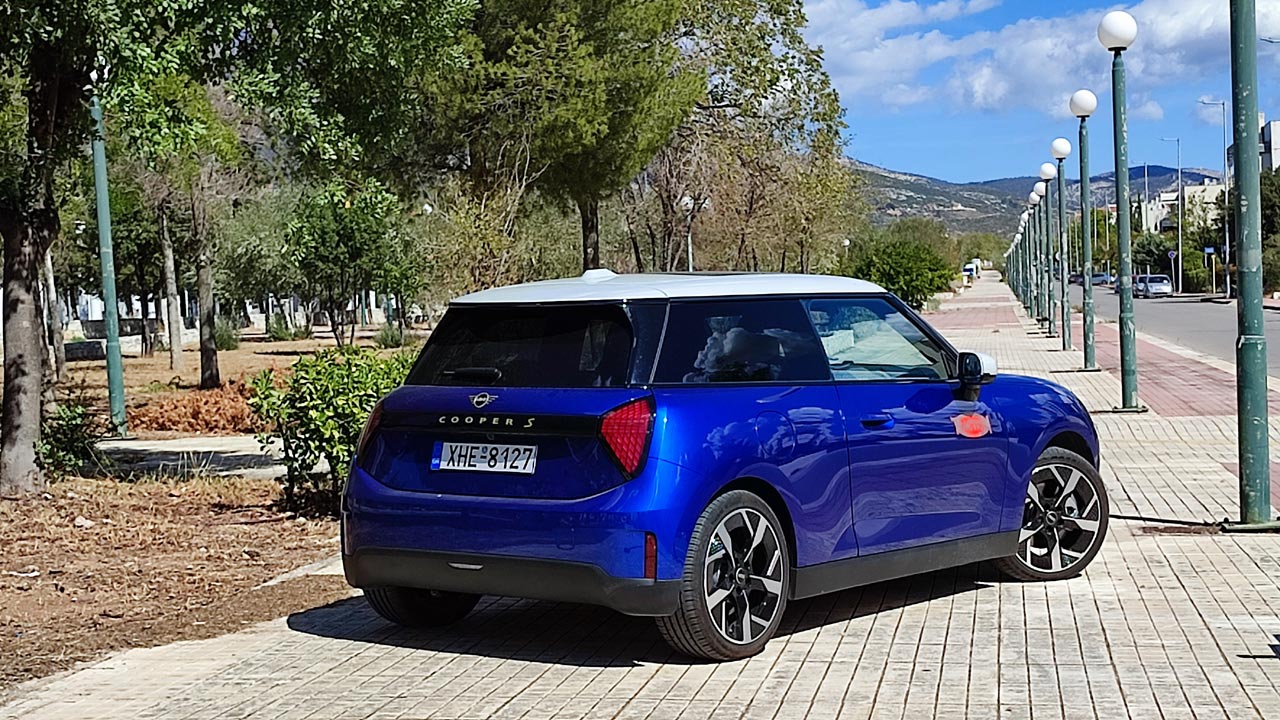 Αρχικά, να ξεκαθαρίσουμε ότι όσοι επιθυμούν αυτή τη στιγμή ένα βενζινοκίνητο Coupe, υπάρχουν δύο επιλογές, το “C” και το “S”. Εμείς εδώ όμως δοκιμάζουμε το αμιγώς ηλεκτρικό MINI Cooper SΕ. Η εμφάνισή του διατηρεί στοιχεία του παρελθόντος. Ενδεικτικά, στο εμπρός τμήμα συναντάμε τα κυκλικά LED φωτιστικά σώματα. Στο πλάι, το τρίπορτο αμάξωμα ξεχωρίζει με τις διχρωμίες του και την παράλληλη γραμμή οροφής με το έδαφος, ενώ πίσω υπάρχουν ανασχεδιασμένα LED σώματα. Το μήκος του MINI Cooper αγγίζει τα 3.876 χλστ., το πλάτος τα 1.744 και το ύψος τα 1.452 χλστ.