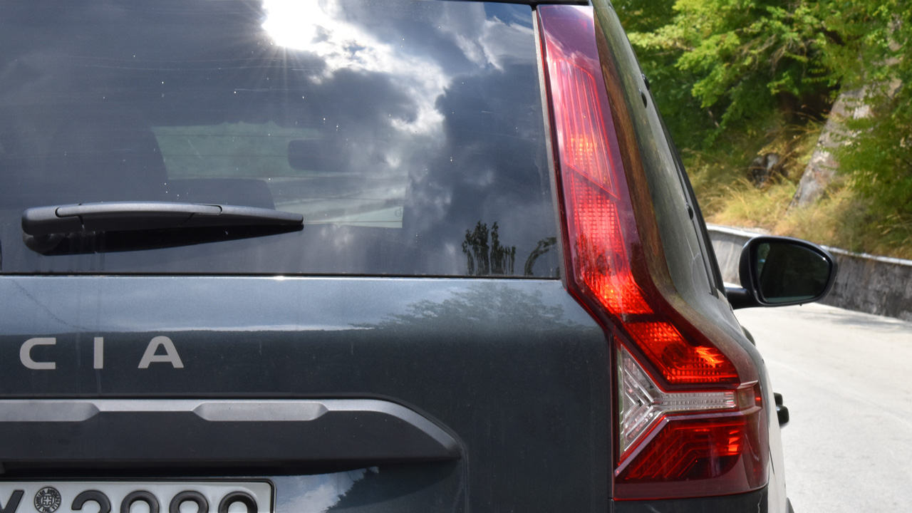 H πρώτη μου οπτική επαφή με το 7θέσιο Dacia Jogger πραγματοποιήθηκε στην πανελλήνια δημοσιογραφική παρουσίαση στα γραφεία της Teoren Motors A.E. Μία πρώτη ματιά ήταν από τότε αρκετή ώστε να “συλλάβω” τα κοινά σχεδιαστικά στοιχεία με το μικρότερο Sandero, όπως για παράδειγμα τα LED φωτιστικά σώματα και η σχεδίαση της εμπρός μετώπης. Το εμπρός καπό διατρέχουν επίσης δύο έντονα νεύρα, ενώ το πίσω μέρος είναι τελείως κάθετο για να κερδίζει χώρους η καμπίνα. Κάθετα τοποθετημένα είναι και τα πίσω φωτιστικά σώματα. Επιπλέον, όπως είναι λογικό για ένα όχημα με crossover στοιχεία, στο κάτω μέρος του αμαξώματος συναντάμε πλαστικές επενδύσεις, ψηλά στην οροφή υπάρχουν ράγες για επιπλέον φόρτωση και η απόσταση από το έδαφος ορίζεται στα 200 χλστ. Οι πιο παρατηρητικοί θα διαπιστώσουν ότι στην τρίτη σειρά καθισμάτων υπάρχουν ανακλινόμενα παράθυρα, ενώ αξιοσημείωτη “sportive” λεπτομέρεια είναι και οι σκουρόχρωμες ζάντες 16 ιντσών του αυτοκινήτου της δοκιμής. Αναφορικά με τις διαστάσεις, το μήκος του Dacia Jogger αγγίζει τα 4.546 χλστ., το πλάτος τα 1.784 χλστ. και το ύψος τα 1.674 χλστ.