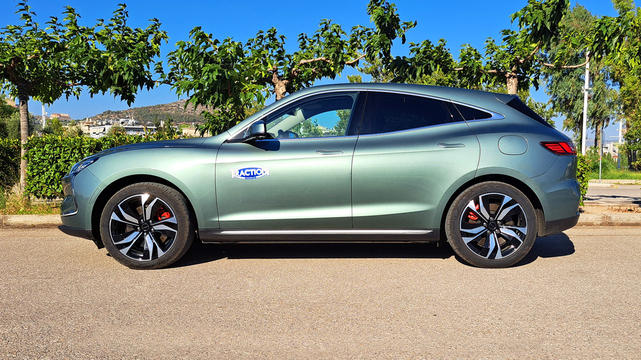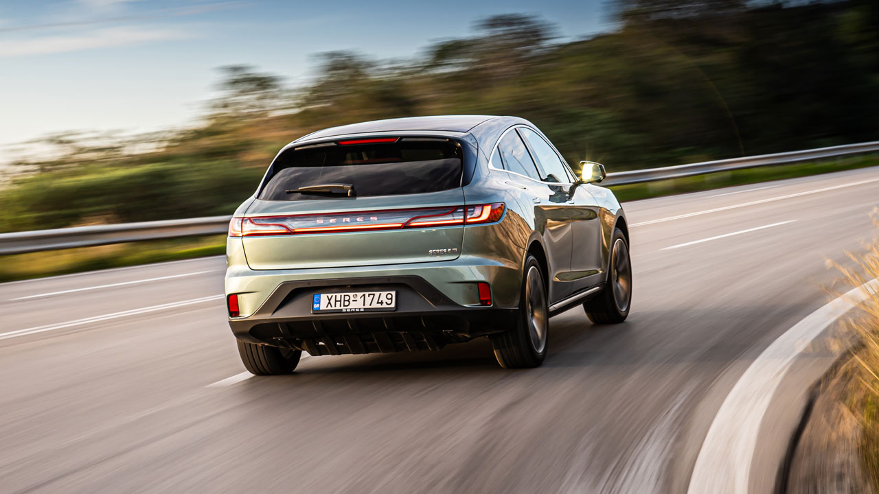 Η κινεζική εταιρεία συστήθηκε στο ελληνικό κοινό μέσω του Seres 5, ενός αμιγώς ηλεκτρικού μοντέλου που θα διατεθεί σε τρεις εκδόσεις, μία δικίνητη και δύο τετρακίνητες. Εξωτερικά, πέρα από τα εμπρός σώματα που αντλούν έμπνευση από το ελληνικό γράμμα, υπάρχει ενεργή εισαγωγή αέρα. Στο πλάι συναντάμε κρυφές χειρολαβές που συμβάλλουν στη μείωση του συντελεστή οπισθέλκουσας στο 0,278Cd, μία από τις χαμηλότερες τιμές στην κατηγορία. Η σχεδίαση ολοκληρώνεται με την έντονη κλίση στο πίσω μέρος (fastback), εκεί όπου υπάρχει επίσης αεροτομή και σώματα που διατρέχουν το αμάξωμα κατά πλάτος. Είτε λόγω της άγνωστης σε πολλούς μάρκας, είτε λόγω της εντυπωσιακής σχεδίασης, στη διάρκεια της δοκιμής διαπιστώσαμε ότι το Seres 5 καταφέρνει να “τραβά” τα βλέμματα των περαστικών. Αναφορικά τώρα με τις διαστάσεις, το αμάξωμα των 2.360 κιλών έχει μήκος 4.710 χλστ., πλάτος 1.930 και το ύψος του αγγίζει τα 1.620 χλστ.