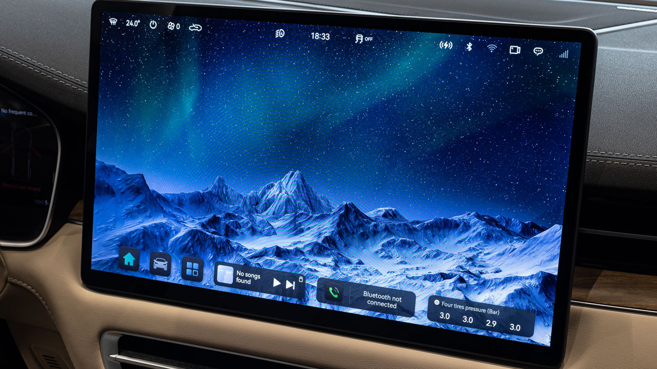 Περνάμε στο εσωτερικό, όπου “κυριαρχεί” μία μεγάλη οθόνη αφής στο κέντρο μεγέθους 15,6 ιντσών, ενώ πίσω από το τιμόνι υπάρχει ακόμα μία οθόνη σε ρόλο πίνακα οργάνων μεγέθους 12,3 ιντσών για την ενημέρωση του οδηγού. Επιπλέον αξιοσημείωτα στοιχεία είναι ο ατμοσφαιρικός φωτισμός (64 χρώματα), τα δύο σημεία ασύρματης φόρτισης, τα θερμαινόμενα / ψυχόμενα καθίσματα (με λειτουργίες μασάζ), αλλά και οι δερμάτινες επενδύσεις (Nappa). Στην διάρκεια της δοκιμής, διαπιστώσαμε ότι χρειάστηκε να περάσει περισσότερη ώρα από την συνηθισμένη για να έρθει η εξοικείωση με το Seres 5. Για παράδειγμα, η θέση τον αλάρμ στην πλαφονιέρα της οροφής δεν συνηθίζεται εύκολα (αν δεν είσαι ο ιδιοκτήτης του οχήματος), ενώ ο έλεγχος όλων των συστημάτων από την κεντρική οθόνη (απουσία φυσικών διακοπτών) δυσκολεύει στις πρώτες βόλτες. Για παράδειγμα, ακόμα και η θέση των αεραγωγών ρυθμίζεται με αφή μέσω του infotainment.