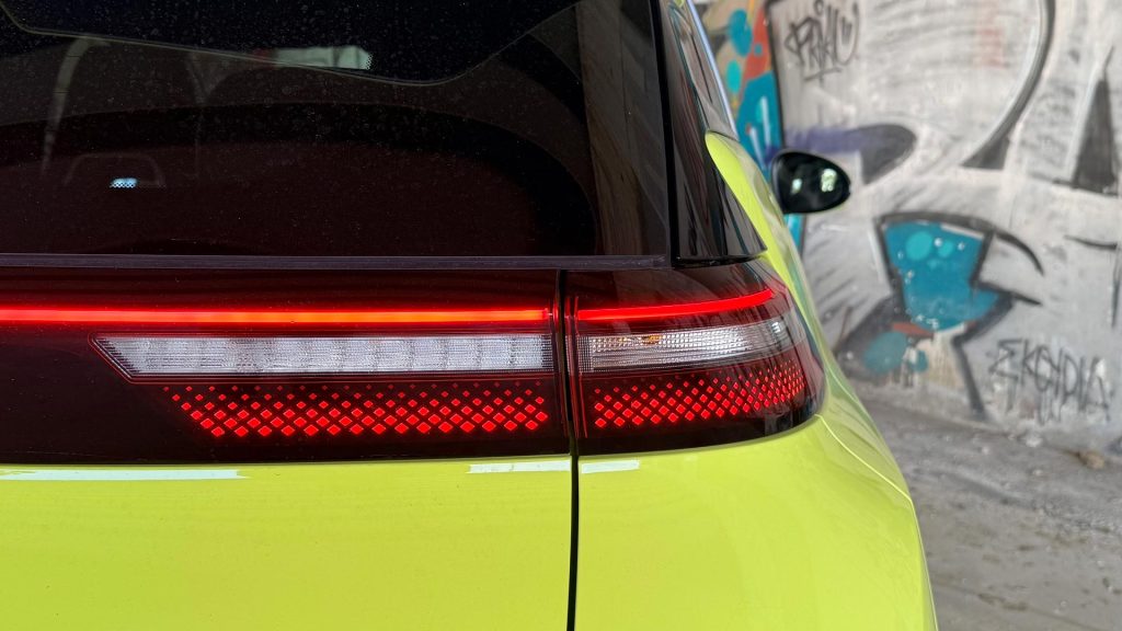 Ξεκινώ από την εξωτερική εμφάνιση του BYD Dolphin Surf, το οποίο ειδικά σε αυτό το χρώμα δεν περνούσε από πουθενά απαρατήρητο! Στο εμπρός τμήμα συναντάμε μία άκρως δυναμική σχεδίαση, η οποία οφείλεται κυρίως στα “αιχμηρά” φωτιστικά σώματα. Αρκετά φουτουριστικό είναι και το πίσω μέρος, εκεί όπου υπάρχει μία LED λωρίδα που ενώνει τα φωτιστικά σώματα, ενώ στο πάνω μέρος συναντάμε αεροτομή που είναι ενσωματωμένη στο αμάξωμα. H “sportive” εμφάνιση του μικρού Dolphin ολοκληρώνεται με τις μαύρες ζάντες αλουμινίου μεγέθους 16 ιντσών (15″ στη βασική έκδοση Active). Αναφορικά τώρα με τις διαστάσεις, το αμάξωμα που βασίζεται στην αρχιτεκτονική e-Platform 3.0 έχει μήκος 3.990 χλστ., πλάτος 1.720 και ύψος 1.590 χλστ. Διαθέτει δηλαδή τις σωστές διαστάσεις αλλά και την απαιτούμενη ευελιξία για οδήγηση σε στενούς αστικούς δρόμους και στάθμευση σε περιορισμένους χώρους.