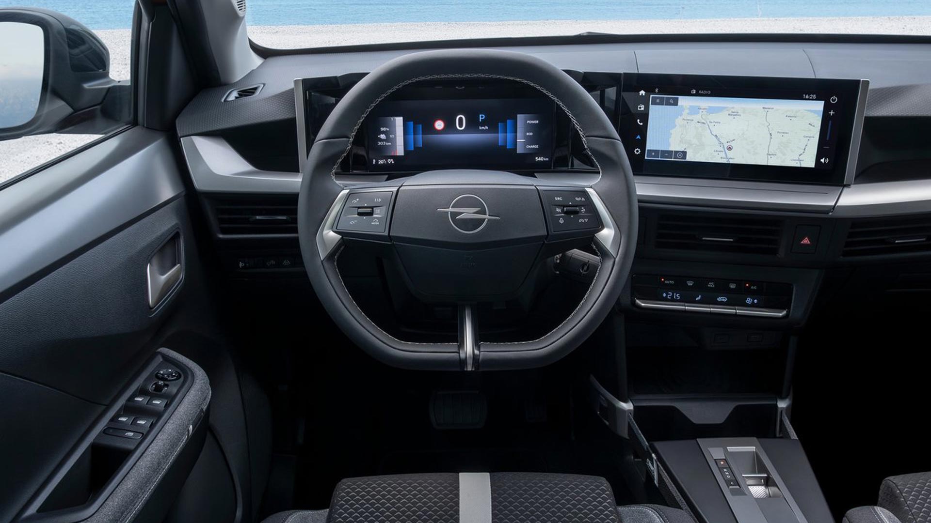 Περνώντας στο εσωτερικό, τις εντυπώσεις κερδίζει το πλήρως ψηφιακό cockpit της Opel, το Pure Panel, με τις δύο οθόνες 10 ιντσών, καθώς και το κομψό νέο τιμόνι. Επιπλέον, η Opel φέρνει μία καινοτομία στα καθίσματα με το νέο Frontera. Το πατενταρισμένο χαρακτηριστικό Intelli-Seat των μπροστινών καθισμάτων παρέχει καλύτερη υποστήριξη στο κάτω τμήμα της σπονδυλικής στήλης και εξασφαλίζει εξαιρετική άνεση, ακόμα και κατά τη διάρκεια μακρινών ταξιδιών. Η φόρτιση των κινητών συσκευών γίνεται με ασύρματο φορτιστή και τις θύρες USB (δύο θύρες είναι διαθέσιμες στο μπροστινό μέρος και άλλες δύο στη δεύτερη σειρά καθισμάτων), ενώ μεγαλύτερες συσκευές, όπως τα tablet, αποθηκεύονται με ασφάλεια στην κεντρική κονσόλα, όπου ένας εύκαμπτος ιμάντας τις συγκρατεί στη θέση τους.