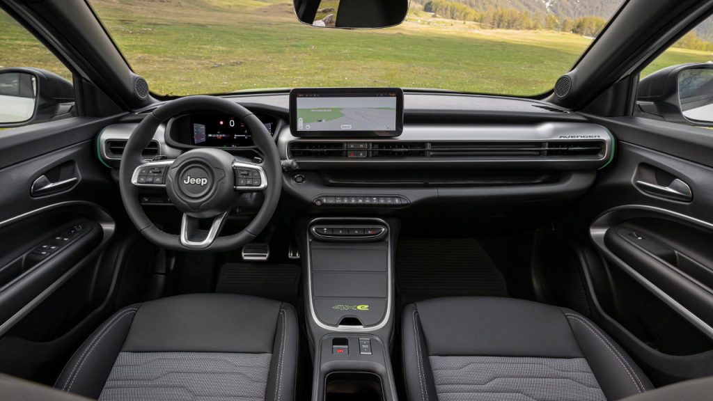 Πάμε και στο εσωτερικό, το οποίο διακρίνεται για την μοντέρνα και ευχάριστη σχεδίασή του. Κοινός παρονομαστής αποτελεί για όλες τις εκδόσεις το στάνταρ πλούσιο επίπεδο. Εφοδιασμένο με το σύστημα infotainment Uconnect με την οθόνη αφής των 10,25’’ και ψηφιακό πίνακα οργάνων (7’’ ή 10,25’’ ανάλογα με την έκδοση), το Avenger εξασφαλίζει πλήρη συνδεσιμότητα μέσω και των εφαρμογών mirroring, Android Auto και Apple CarPlay. Την ίδια στιγμή οι υπηρεσίες Uconnect Services επιτρέπουν τον έλεγχο λειτουργιών του αυτοκινήτου (σύστημα κλιματισμού, κλείδωμα, κτλ.) από απόσταση, μέσω του smartphone του χρήστη. Από τον πλούσιο εξοπλισμό δεν απουσιάζει επίσης η κάμερα οπισθοπορείας με drone view. Λίγο κάτω από την κεντρική οθόνη, συναντάμε τα “φυσικά” κουμπιά του αυτόματου σασμάν (e-DCT6), τα οποία εξοικονομούν χώρο, ο οποίος αξιοποιείται με τον βέλτιστο τρόπο. Έτσι, ανάμεσα στα καθίσματα οδηγού και συνοδηγού υπάρχουν πρακτικές θήκες για μικροαντικείμενα και ποτηροθήκες μεταβαλλόμενου μεγέθους, ενώ από την έκδοση SUMMIT δεν απουσιάζει και η ασύρματη βάση φόρτισης κινητού. Στην κεντρική κονσόλα υπάρχει και ο διακόπτης των προγραμμάτων οδήγησης Selec-Terrain (ECO, NORMAL, SPORT, SAND, MUD, SNOW), ενώ δεν απουσιάζει και το Hill Descent Control που φροντίζει για σίγουρες καταβάσεις σε απότομες πλαγιές.