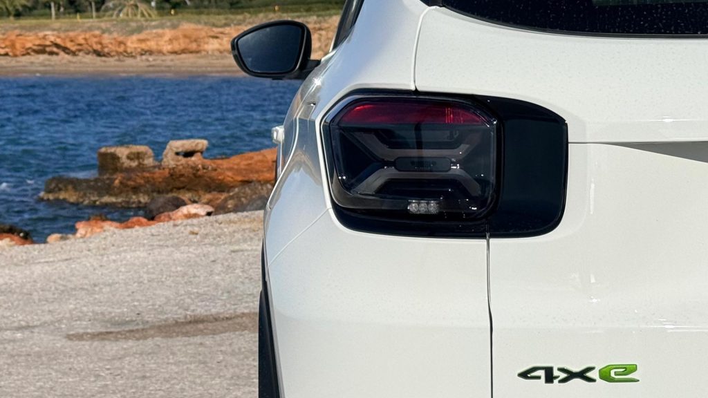Ξεκινώντας από την εξωτερική εμφάνιση, το Jeep Avenger 4xe ξεχωρίζει σε πολλά σημεία από τις “συμβατικές” εκδόσεις. Αρχικά, η απόσταση του αμαξώματος από το έδαφος έχει αυξηθεί κατά 10 χλστ. σε σύγκριση με την έκδοση e-Hybrid. Αποτέλεσμα είναι να επιτυγχάνονται καλύτερες γωνίες προσέγγισης, ράμπας και αναχώρησης (22 μοίρες, 21 και 35 αντίστοιχα). Επίσης, προσφέρεται με στάνταρ ελαστικά M+S για καλύτερη πρόσφυση σε “ειδικές” συνθήκες, ενώ υπάρχει και η επιλογή των All Terrain 3PMSF ελαστικών για τις πιο ακραίες ανάγκες. Άλλες αξιοσημείωτες εξωτερικές “πινελιές” είναι οι πιο ψηλά τοποθετημένοι προβολείς ομίχλης για καλύτερη ορατότητα σε χωμάτινες διαδρομές, το εμφανές σημείο ρυμούλκησης στο πίσω μέρος και οι στάνταρ μπάρες οροφής. Οι πιο παρατηρητικοί θα δουν στον εμπρός προφυλακτήρα και τα προστατευτικά του ραντάρ των συστημάτων υποβοήθησης. Ένα χαρακτηριστικό της εξωτερικής εμφάνισης είναι τα πολλά γραφικά που παραπέμπουν στην φιλοσοφία της εταιρείας, όπως για παράδειγμα ο “εξερευνητής” στο εμπρός παρμπρίζ και το βουνό στο πίσω. Όσο για τις διαστάσεις, το μήκος του αμαξώματος αγγίζει τα 4,08 μέτρα, 16 εκατοστά πιο μικρό από το Renegade. Το δε πλάτος φτάνει τα 1.776 χλστ. και το ύψος 1.528.