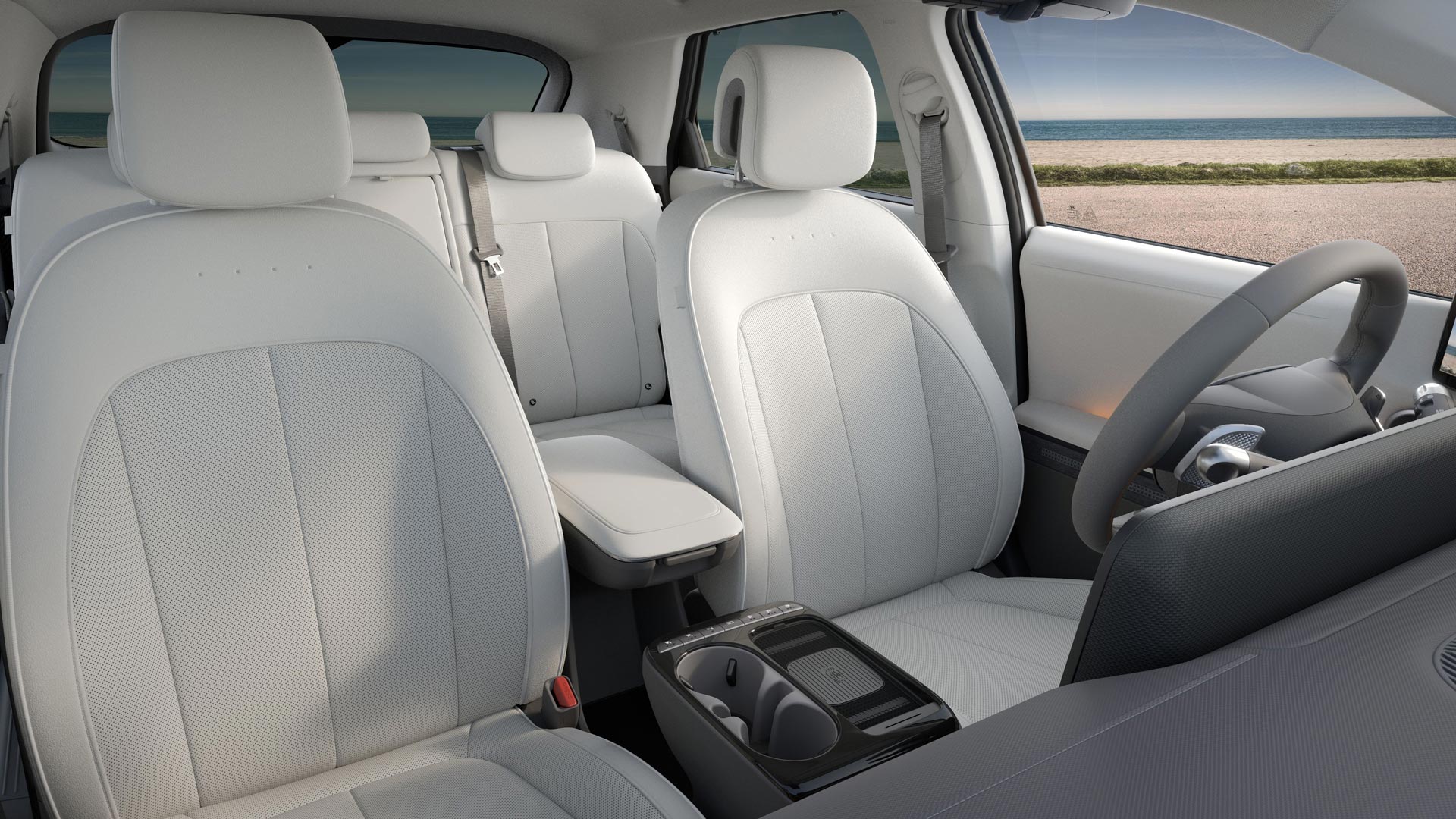 Σε επίπεδο πρακτικότητας υπάρχει άπλετος χώρος για πέντε επιβάτες, επαρκής χώρος για τα πόδια στην πίσω σειρά (απουσιάζει το κεντρικό τούνελ στο πάτωμα), ενώ πολλές είναι και θήκες για μικροαντικείμενα. Τα πίσω καθίσματα είναι επίσης συρόμενα, ώστε να αυξάνεται ο χώρος για αποσκευές, με τον τελευταίο να αγγίζει τα 520 λίτρα (+57 λτ. από το frunk). Το Hyundai Connected Car Navigation Cockpit (ccNC) βρίσκεται στο επίκεντρο με ένα συνδυασμό οθόνης infotainment 12,3 ιντσών και ψηφιακής οθόνης 12,3 ιντσών πίσω από το τιμόνι σε ρόλο πίνακα οργάνων. Επιπλέον, το IONIQ 5 προσφέρει ένα Head-Up Display που παρουσιάζει βασικές πληροφορίες, όπως για παράδειγμα την πλοήγηση. Πέρα από τις οθόνες, υπάρχουν πολλές θύρες φόρτισης για εμπρός και πίσω επιβάτες, αλλά και ένα πάνελ για την ασύρματη φόρτιση συσκευής.