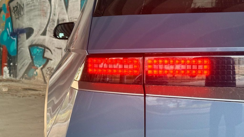 Εξωτερικά, οι αλλαγές είναι διακριτικές, με τους ανασχεδιασμένους προφυλακτήρες εμπρός και πίσω να μεταβάλλουν ελαφρώς τις διαστάσεις. Τώρα, το μήκος του Hyundai IONIQ 5 αυξήθηκε κατά 20 χλστ., φτάνοντας αισίως στα 4.655 χλστ. Οι υπόλοιπες διαστάσεις παρέμειναν αμετάβλητες, με το πλάτος να φτάνει τα 1.890 και το ύψος τα 1.605 χλστ. Επιπλέον, αλλαγές έχουμε στη σχεδίαση των τροχών, αλλά και στην διαφοροποίηση της πίσω αεροτομής, η οποία επεκτάθηκε προς τα πίσω κατά 50 χλστ. Επιπλέον, αξιοσημείωτο είναι το γεγονός πως το αμιγώς ηλεκτρικό μοντέλο της εταιρείας εξοπλίζεται με την έκδοση N Line (δεν είναι αυτή της δοκιμής), η οποία διακρίνεται για τα “sportive” στοιχεία. Ενδεικτικά, υπάρχουν ζάντες αλουμινίου μεγέθους 20 ιντσών, νέοι προφυλακτήρες και πλαϊνές ποδιές. Επίσης, στο εσωτερικό συναντάμε κόκκινες ραφές, το λογότυπο N Line σε αρκετά σημεία, αλλά και ειδικά σχεδιασμένα καθίσματα με αναβαθμισμένη πλευρική στήριξη.