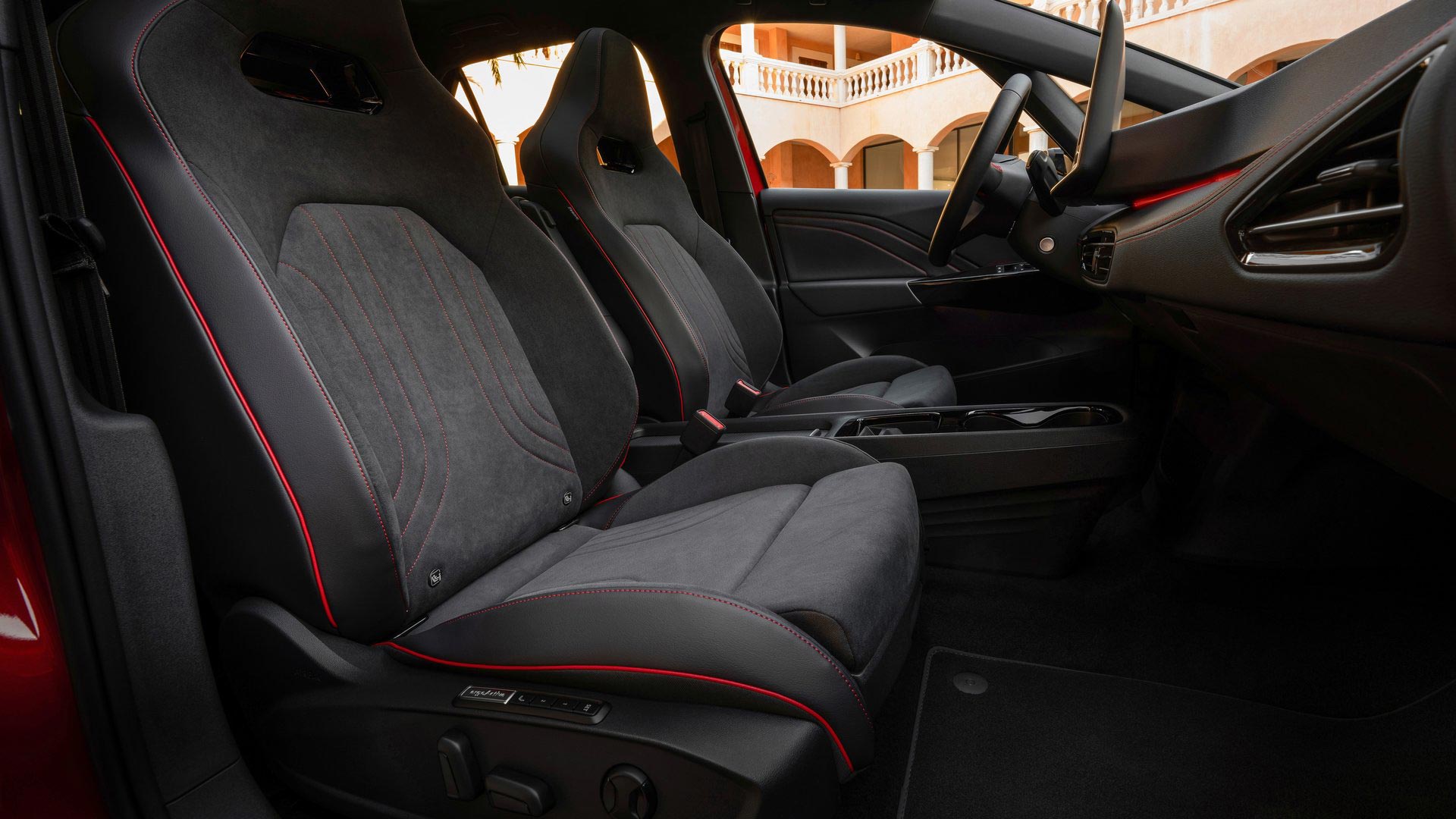 Περνάμε στην καμπίνα του ανανεωμένου μοντέλου, εκεί όπου υπάρχουν ανώτερης ποιότητας υλικά. Είναι εμφανές ότι έγινε χρήση αφρώδους πλαστικού, το οποίο δημιουργεί μια πιο ποιοτική αίσθηση στην αφή. Ως προς το ψηφιακό περιβάλλον, πίσω από το τιμόνι υπάρχει η γνωστή οθόνη 5,3 ιντσών για την ενημέρωση του οδηγού με τις απολύτως απαραίτητες ενδείξεις, ενώ στα δεξιά υπάρχει ο περιστροφικός επιλογές. Στην κεντρική κονσόλα βρίσκεται μία οθόνη αφής μεγέθους 12,9 ιντσών, μέσω της οποίας γίνεται η ενημέρωση και ψυχαγωγία των επιβατών. Περιλαμβάνει μεταξύ άλλων κάμερα οπισθοπορείας, δυνατότητα ασύρματης συνδεσιμότητας Android Auto / Apple CarPlay, ενώ ακριβώς πιο κάτω βρίσκεται η “μπάρα” αφής για τον έλεγχο του συστήματος κλιματισμού. Στοιχεία που σίγουρα εντυπωσιάζουν είναι όλα αυτά που συνδέονται με την GTX έκδοση, όπως για παράδειγμα τα εντυπωσιακά “μονοκόμματα” καθίσματα, οι κόκκινες ραφές σε αρκετά σημεία, αλλά και τα αλουμινένια πεντάλ. Μοναδικό “ψεγάδι” για την εργονομία του εσωτερικού, αποτελούν οι διακόπτες για τον χειρισμό των παραθύρων. Για τον οδηγό η γερμανική εταιρεία έχει επιλέξει να τοποθετήσει δύο διακόπτες και ένα κουμπί αφής με την ένδειξη “Rear”. Για να ανοίξει πχ. κάποιος το πίσω παράθυρο, θα πρέπει να πάρει το βλέμμα από τον δρόμο, να πατήσει το “Rear” και στη συνέχεια να ανοίξει το παράθυρο. Σίγουρα δεν θα το χαρακτηρίζαμε ως μία εργονομική λύση!