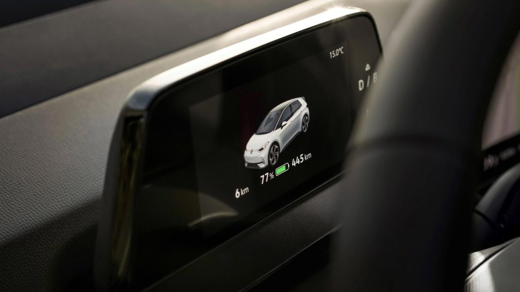 Όσον αφορά τώρα στην φόρτιση, η μπαταρία του VW ID.3 μπορεί να δεχθεί ακόμα και ισχύ 185 kW. Συνεπώς, σε ταχυφορτιστή τέτοιας ισχύος είναι εφικτή η πλήρωση έως το 80% μέσα σε λιγότερο από μισή ώρα. Από την άλλη, σε ένα οικιακό wallbox 11 kW, θα χρειαστούν περίπου 9 ώρες για την πλήρη φόρτιση. Για να γίνουμε πιο κατανοητοί, για τις καθημερινές αστικές μετακινήσεις, αρκεί μία βραδινή φόρτιση, ώστε ο μέσος οδηγός να διανύσει τις χιλιομετρικές αποστάσεις της εβδομάδας.