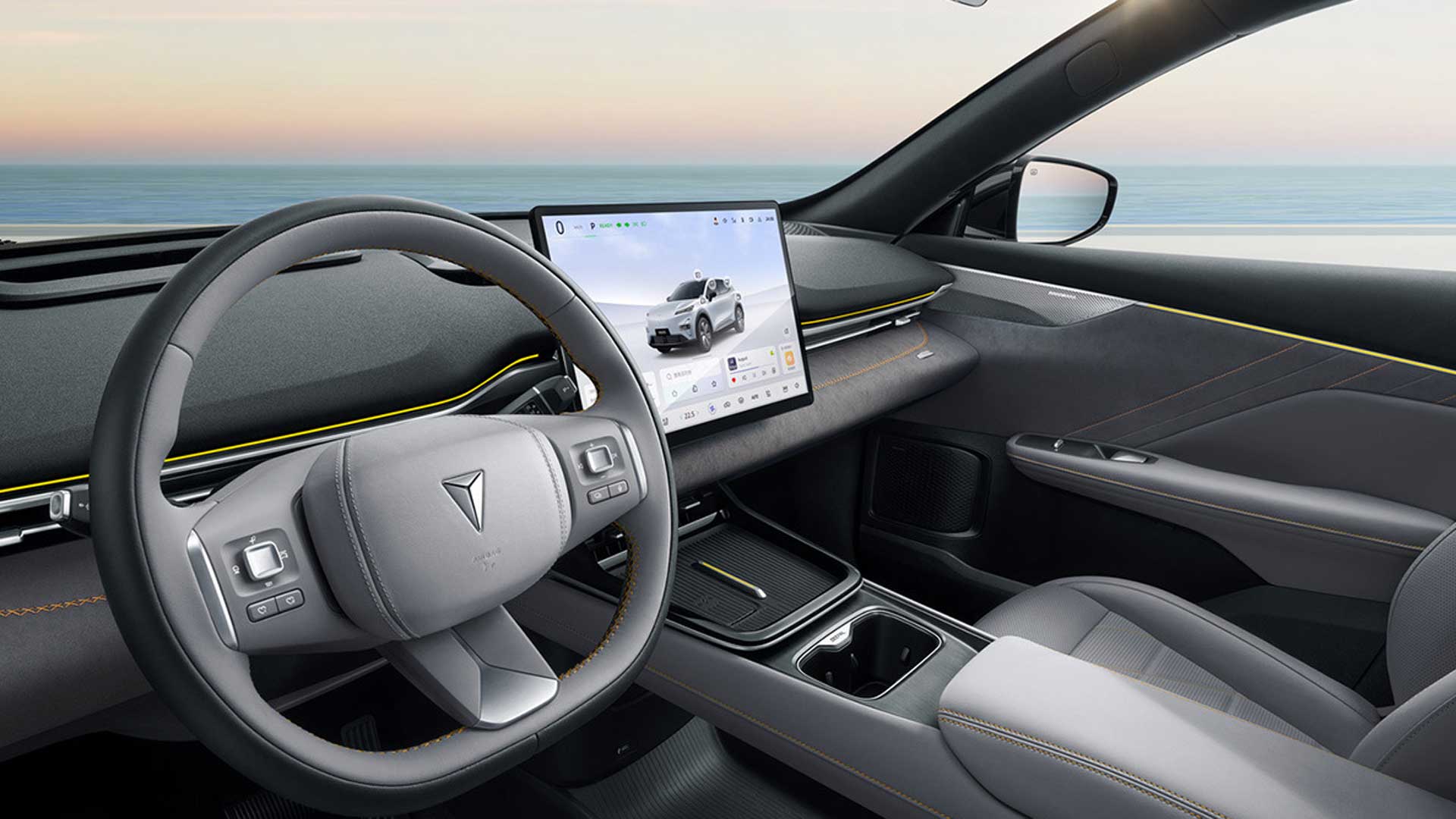 Στο εσωτερικό, η Deepal ακολουθεί τη γνωστή πλέον συνταγή: μινιμαλισμός και ψηφιοποίηση. Η ποιότητα κατασκευής είναι σε πολύ καλό επίπεδο, με προσεγμένα υλικά και φινίρισμα που δεν αφήνει περιθώρια αμφισβήτησης. Η μεγάλη οθόνη των 15,6 ιντσών συγκεντρώνει σχεδόν τα πάντα, με δυνατότητα περιστροφής προς οδηγό ή συνοδηγό. Εντυπωσιακό ως ιδέα, λιγότερο πρακτικό στην καθημερινότητα. Η… διακριτική παρουσία φυσικών διακοπτών και πίνακα οργάνων απαιτεί εξοικείωση – και όχι μικρή. Σίγουρα πρέπει να αναθεωρηθεί η… ιδέα της ρύθμισης των εξωτερικών καθρεφτών επιλέγοντας διάφορα υπομενού μενού μέσα από την οθόνη αφής, ο ήχος των φλας θα πρέπει να είναι διακριτός πάντα και όχι να επικαλύπτεται από άλλους ήχους βοηθητικών συστημάτων οδήγησης, ενώ και το κουμπί των “Alarm” στην οροφή του αυτοκινήτου, στην πλαφονιέρα, καμιά φορά σε κάνει να ενεργοποιείς άθελά σου τα φώτα καμπίνας (που είναι αφής).