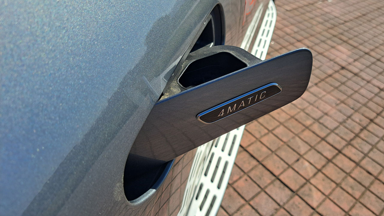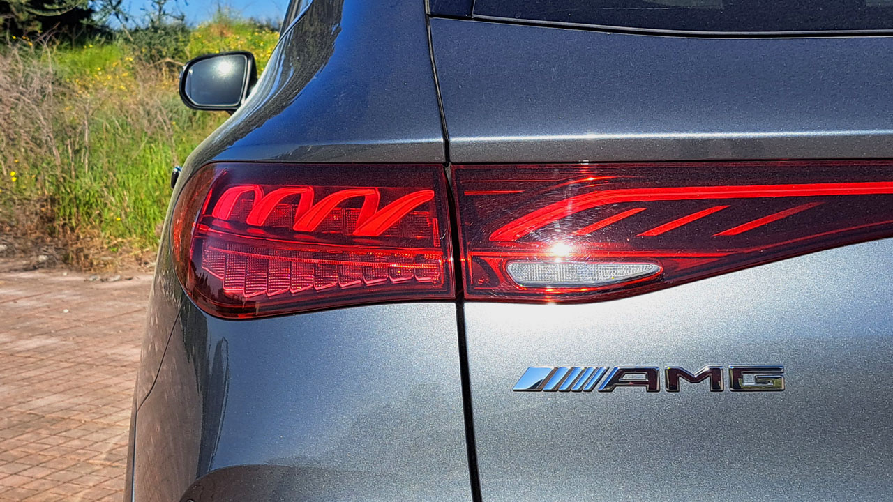 Ξεκινάμε από την εξωτερική εμφάνιση, με την Mercedes-AMG EQE 43 4MATIC να διακρίνεται για το επιβλητικό της μέγεθος. Το μήκος να αγγίζει τα 4.863 χλστ., το πλάτος τα 1.940 και το ύψος τα 1.686 χλστ. Σε σχεδιαστικό επίπεδο, σήμα κατατεθέν είναι η LED λωρίδα που ενώνει τα εμπρός φωτιστικά σώματα, αλλά και η χαρακτηριστική μάσκα με το μαύρο πάνελ, τις κάθετες γραμμές και το λογότυπο της AMG. Συνεχίζοντας προς το πλάι συναντάμε το σκαλοπάτι για πιο εύκολη πρόσβαση στην καμπίνα, αλλά και τις εντυπωσιακές ζάντες μεγέθους 21 ιντσών που “φιλοξενούν” εμπρός εξαπίστονες δαγκάνες. Στο φτερό προς την πλευρά του οδηγού, οι πιο παρατηρητικοί θα εντοπίσουν και ένα καπάκι (για πλήρωση καθαριστικού παρμπρίζ), ενώ ακόμα ένα εντυπωσιακό στοιχείο είναι οι “κρυφές”, φωτιζόμενες χειρολαβές. Πάμε και στο πίσω μέρος, εκεί όπου υπάρχει μία διακριτική αεροτομή, διαχύτης και LED λωρίδα που διατρέχει το αμάξωμα και ενώνει τα φωτιστικά σώματα. Επιπλέον αλλαγές λόγω της AMG φύσης του SUV είναι οι ανασχεδιασμένοι προφυλακτήρες με αεροδυναμικά βοηθήματα.