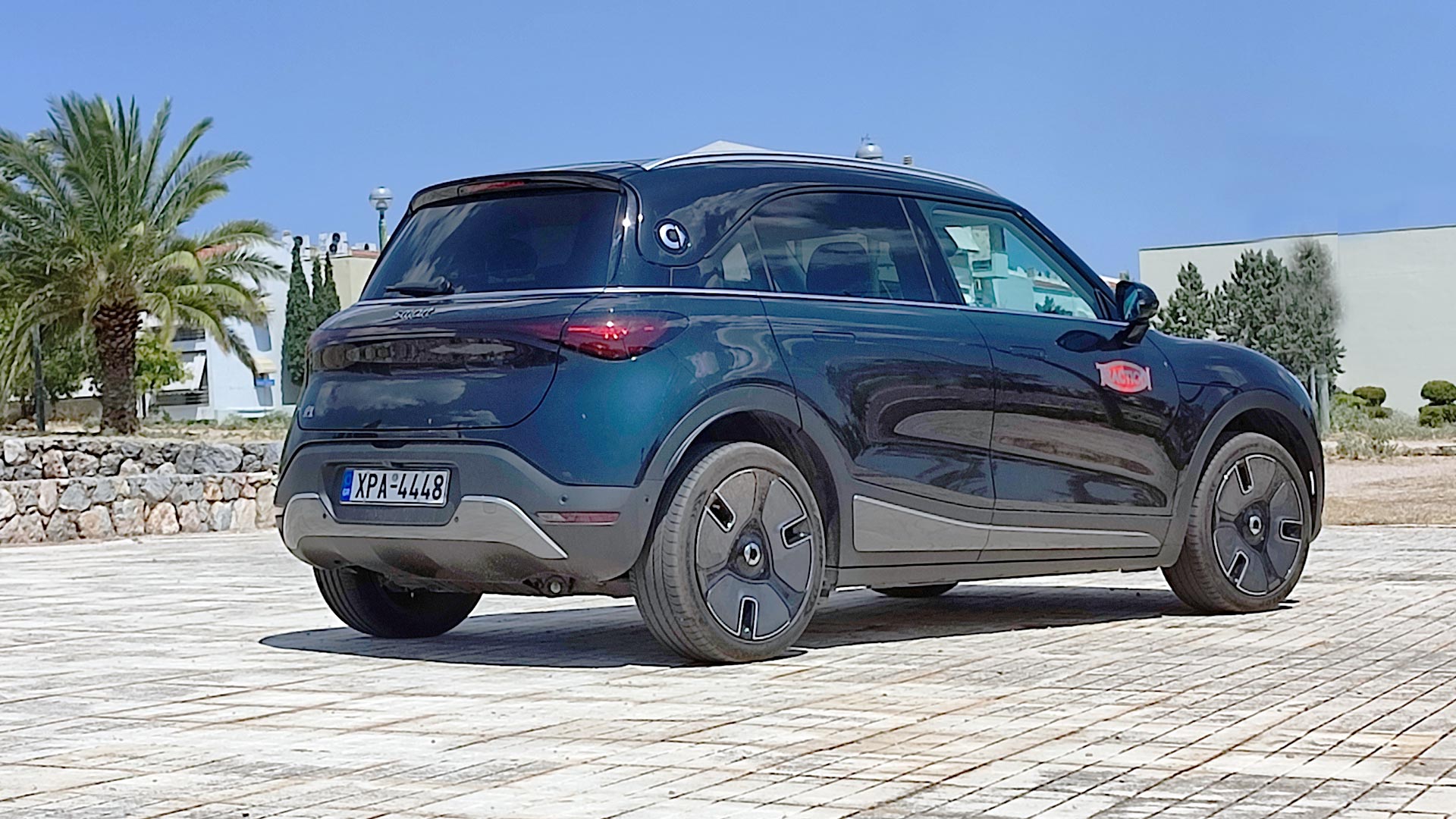 To πρώτο SUV στην ιστορία της εταιρείας, μας κάνει να ξεχάσουμε αμέσως ότι ξέραμε για αυτήν, με το που μπούμε στην καμπίνα του! Οι έως και πέντε επιβάτες, έχουν διαθέσιμο έναν όγκο 323 λτ. για τις αποσκευές τους, κλιματιζόμενο αποθηκευτικό χώρο στο υποβραχιώνιο, ενώ το πίσω, διαιρούμενο, κάθισμα αναδιπλώνεται εύκολα, “εκτοξεύοντας” την χωρητικότητα του πορτμπαγκάζ. Πέρα όμως, από τις πρακτικές ευκολίες, έχει δοθεί έμφαση και στη συνολική εμπειρία που αποκομίζει όποιος βρεθεί στο εσωτερικό του. Αυτό επιτυγχάνεται με στοιχεία όπως ο ατμοσφαιρικός φωτισμός, τον οποίο προσαρμόζεις ανάλογα με την περίσταση και τη διάθεσή σου, η μοντέρνα σχεδίαση του εσωτερικού και τα προσεγμένα υλικά κατασκευής. Πάμε και στο “ψηφιακό” περιβάλλον του SUV της smart, το οποίο προσφέρει όλες τις σύγχρονες ανέσεις. Μέσω της κεντρική οθόνης αφής μεγέθους 12,8 ιντσών με υψηλή ευκρίνεια, προσφέρονται μεταξύ άλλων δυνατότητες συνδεσιμότητας Android Auto και Apple CarPlay, ενώ δεν απουσιάζει η κάμερα 360 μοιρών. Το ψηφιακό περιβάλλον ολοκληρώνεται με το Head-Up Display μεγέθους 10 ιντσών που επιτρέπει στον οδηγό να ενημερώνεται χωρίς να παίρνει το βλέμμα από τον δρόμο, αλλά και από μία οθόνη πίσω από το τιμόνι σε ρόλο πίνακα οργάνων μεγέθους 9,2 ιντσών. Φυσικά δεν μπορώ να μην αναφερθώ στον έξυπνο έλεγχο του αυτοκινήτου, μέσω του πρωτότυπου σε σχεδίαση στρογγυλού “κλειδιού”. Απλώς το έχεις στην τσέπη σου και μόλις πλησιάζεις το αυτοκίνητο σε υποδέχεται και δεν χρειάζεται να πατήσεις κάποιο κουμπί για να εκκινήσεις… Απλώς βάζεις “D” στο αυτόματο κιβώτιο και έφυγες! Το ίδιο και κατά την αποχώρηση. Απλώς επιλέγεις “P” και χαιρετάς…