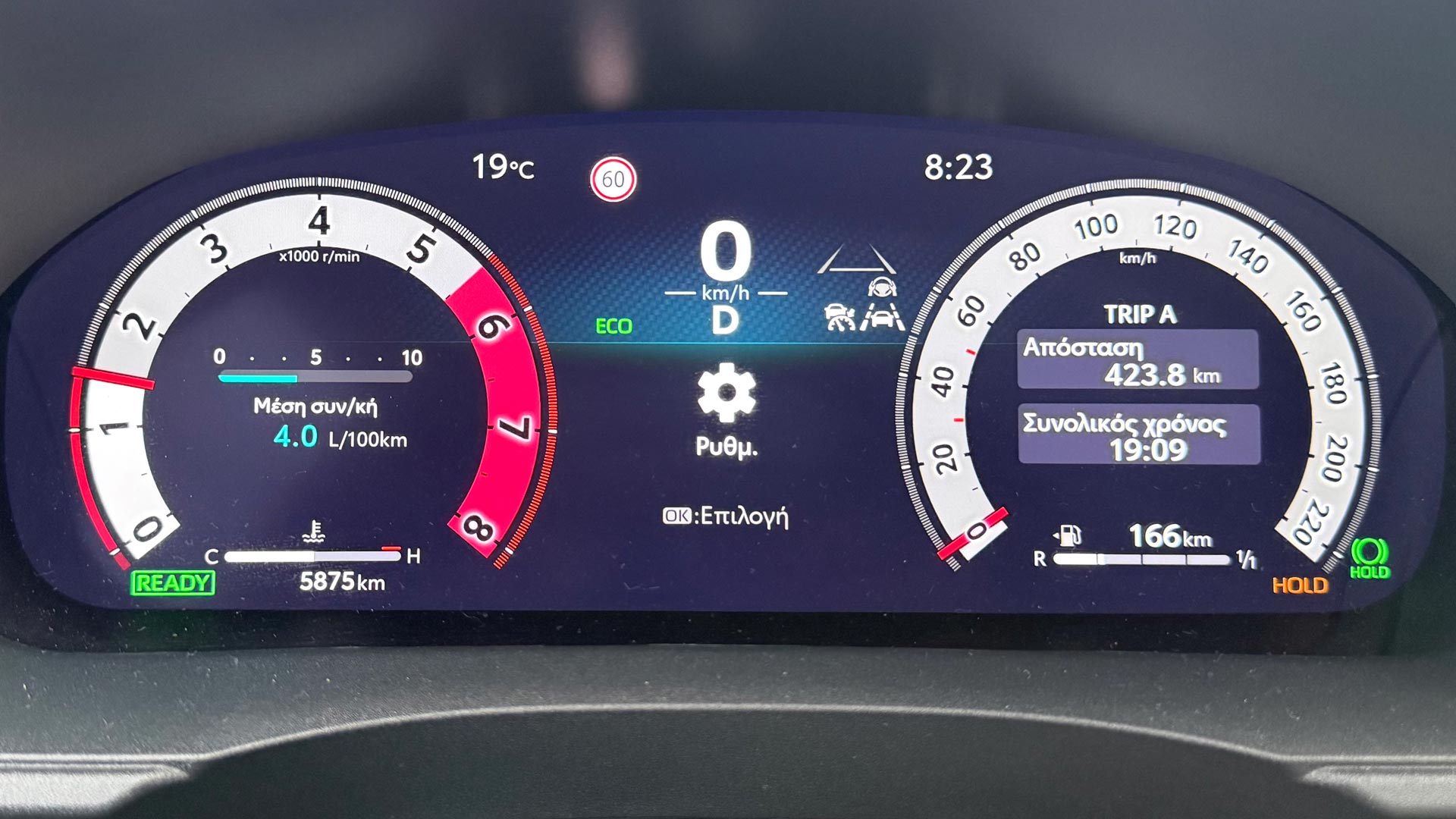 Περνάμε στο εσωτερικό, εκεί όπου το περιβάλλον είναι και πάλι πολύ γνώριμο. Το ψηφιακό περιβάλλον αποτελείται από δύο οθόνες, η μία αναλαμβάνει τον ρόλο του πίνακα οργάνων και έχει μέγεθος 12,3 ιντσών, ενώ η κύρια οθόνη αφής έχει τον ρόλο infotainment. Το μέγεθός της διαμορφώνεται έως τις 10,5 ίντσες ανάλογα με την έκδοση. Προσφέρει εκτός των άλλων ασύρματη συνδεσιμότητα Android Auto / Apple CarPlay, σύστημα πλοήγησης και κάμερα οπισθοπορείας. Πάμε και στους χώρους, οι οποίοι θα φιλοξενήσουν με κάθε άνεση τέσσερις ενήλικες επιβάτες. Κάπου εδώ να αναφερθώ και λίγο πιο αναλυτικά στην πίσω σειρά των καθισμάτων, εκεί όπου ένας ενήλικας ύψους 1,80 μ. θα βολευτεί μόνο στις πλευρικές θέσεις και όχι στην κεντρική, μιας και στην τελευταία ο χώρος για το κεφάλι είναι περιορισμένος.