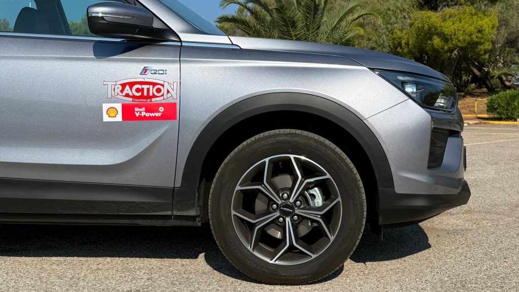 Κάτω από το καπό, η KGM διατηρεί ένα πιο “παραδοσιακό” προφίλ τοποθετώντας ένα αμιγώς βενζινοκίνητο μοτέρ χωρίς κάποια ηλεκτρική υποβοήθηση. Η χωρητικότητά του τετρακύλινδρου κινητήρα αγγίζει τα 1.497 κ.εκ. Η μέγιστη ισχύς αγγίζει τους 163 ίππους και η ροπή φτάνει τα 280 Nm στο εύρος 1.500 – 4.000 σ.α.λ. Η κίνηση περνά στον εμπρός άξονα στην προκειμένη περίπτωση (υπάρχει και τετρακίνητη έκδοση) μέσω χειροκίνητου κιβωτίου με έξι σχέσεις (υπάρχει και δυνατότητα επιλογής αυτόματου σασμάν). Κάπως έτσι, το αμάξωμα των 1.442 κιλών είναι σε θέση να επιταχύνει στα 0-100 χλμ./ώρα εντός 10 δλ. και η τελική ταχύτητα αγγίζει τα 191 χλμ./ώρα. Η κατανάλωση σίγουρα δεν είναι από τα “δυνατά χαρτιά” του KGM Korando, με την εταιρεία να ανακοινώνει μία μέση τιμή της τάξης των 7,7 λτ./100 χλμ. στην έκδοση της δοκιμής. Σε πραγματικές συνθήκες, υπολογίστε μία μέση τιμή της τάξης των 8,5-9,0 λτ./100 χλμ.