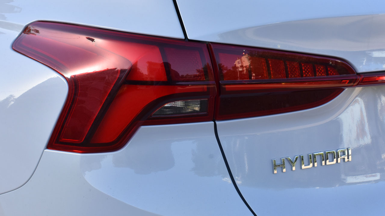 Ξεκινάμε από την εξωτερική σχεδίαση του ογκώδους SUV, με το βλέμμα να στρέφεται αρχικά στην μεγάλη γρίλια και τα λεπτά φωτιστικά σώματα. Τα τελευταία αποτελούνται από δύο τμήματα στην κάθε πλευρά, με το χαμηλότερο να είναι κάθετα τοποθετημένο… θυμίζοντας δάκρυ. Τα πλαστικά προστατευτικά στους θόλους των τροχών και περιμετρικά του αμαξώματος είναι στο χρώμα του αμαξώματος, μια επιλογή που αφορά το προαιρετικό πακέτο “Luxury”, για πρώτη φορά διαθέσιμο στο Santa Fe, ενώ η crossover φιλοσοφία ολοκληρώνεται με την “σεβαστή” απόσταση από το έδαφος και τις ράγες στην οροφή. Μικρότερες αλλαγές εντοπίζονται και στο πίσω μέρος του Santa Fe με τον προφυλακτήρα να είναι επίσης “φρέσκος” σε σχεδίαση και τα φωτιστικά σώματα να έχουν αποκτήσει νέα “εσωτερική” σχεδίαση και να ενώνονται πλέον με μια κόκκινη μπάρα. Αναφορικά με τις διαστάσεις, το μήκος αγγίζει τα 4.785 χλστ., το πλάτος τα 1.900 και το ύψος τα 1.710 χλστ.