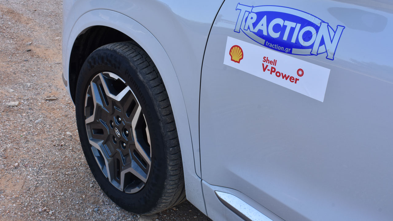Πάμε στο υβριδικό σύστημα της Plug-In έκδοσης, το οποίο αποτελείται από ένα θερμικό μοτέρ χωρητικότητας 1.598 κ.εκ. και έναν ηλεκτροκινητήρα που τροφοδοτεί στους εμπρός τροχούς. Η συνδυαστική ισχύς αγγίζει τους 265 ίππους και η μέγιστη ροπή των 304 Nm έρχεται από τις μόλις 1.500 σ.α.λ. Κάπως έτσι, το ογκώδες Hyundai Santa Fe των δύο τόνων είναι σε θέση τα επιταχύνει στα 0-100 χλμ./ώρα εντός 8,8 δλ. Η δε τελική ταχύτητα φτάνει τα 187 χλμ./ώρα. Την τροφοδοσία του ηλεκτρικού μοτέρ εξασφαλίζει μία μπαταρία χωρητικότητας 13,9 kWh, η οποία φορτίζει πλήρως σε 3μιση ώρες κάνοντας χρήση wallbox 11 kW και επιτρέπει έως 58 χλμ. αυτονομίας (βάσει WLTP) χωρίς να πάρει μπρος ο παλινδρομικός κινητήρας. Στη διάρκεια της δοκιμής διαπιστώσαμε ότι τα 50 χλμ. είναι μία ρεαλιστική τιμή σε αστικό περιβάλλον, όπου η ανάκτηση ενέργειας είναι συχνή. Μόλις αδειάσει η μπαταρία, το σύστημα λειτουργεί υβριδικά. Η Hyundai κάνει λόγο για μόλις 1,6 λτ./100 χλμ. στα πρώτα 100 χιλιόμετρα. Εμείς, όπως αποδεικνύει και η εικόνα, διανύσαμε τα πρώτα 100 χλμ. με μόλις 3,2 λίτρα. Όσο για την “ηλεκτρική” κατανάλωση, αυτή έφτασε στις 13 kWh (κόστος ρεύματος περίπου 5 ευρώ σε δημόσιο φορτιστή και πολύ χαμηλότερο σε οικιακό δίκτυο). Από την άλλη, ξεκινώντας με άδεια μπαταρία, η μέση κατανάλωση φτάνει στα 7,5 λτ./100 χλμ.