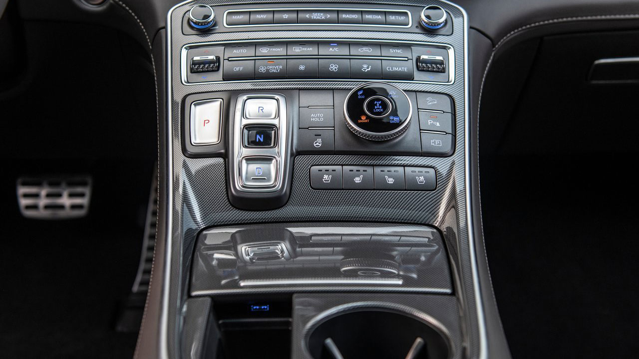 Απαρατήρητο εννοείται πως δεν περνάει και το ψηφιακό περιβάλλον, με το Hyundai Santa Fe να εξοπλίζεται με οθόνη σε ρόλο πίνακα οργάνων πίσω από το τιμόνι. Μέσω αυτής, ο οδηγός λαμβάνει τις απαραίτητες πληροφορίες, ενώ υπάρχουν και οι λεγόμενες “Blind view” κάμερες που διευκολύνουν τις αλλαγές λωρίδας. Το μέγεθός της φτάνει στις 12,3 ίντσες και στο κέντρο υπάρχει η τυπική οθόνη αφής του infotainment μεγέθους 10,5 ιντσών. Περιλαμβάνει μεταξύ άλλων έλεγχο της λειτουργίας του υβριδικού συστήματος, προβολή καμερών 360 μοιρών, αλλά και δυνατότητες ασύρματης συνδεσιμότητας Android Auto και Apple CarPlay.