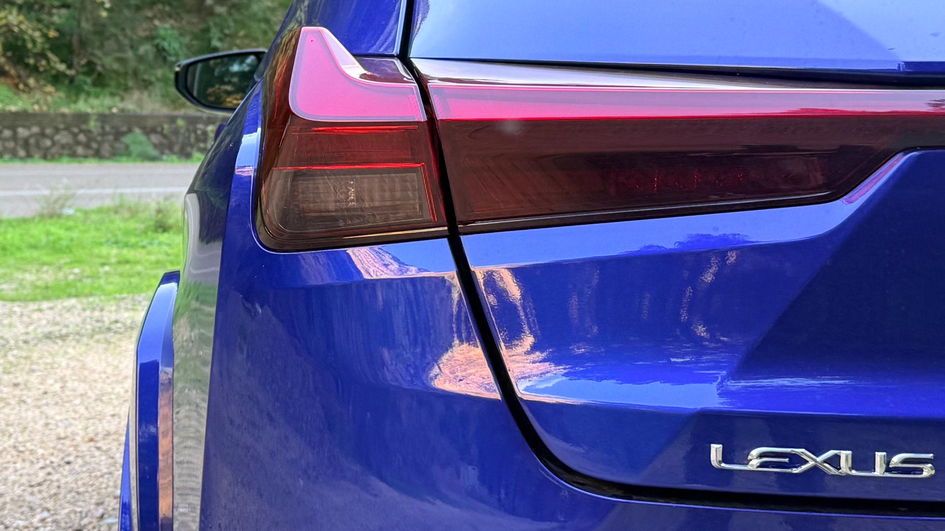 Ξεκινώντας από την εξωτερική εμφάνιση, το Lexus UX ξεχωρίζει για την ιδιαίτερα “επιθετική” του σχεδίαση στο εμπρός τμήμα, με τα “αιχμηρά” φωτιστικά σώματα και τις έντονες γραμμές στη μάσκα. Ειδικά στην περίπτωση της κορυφαίας έκδοσης F-Sport της δοκιμής, το αυτοκίνητο εντυπωσιάζει με στοιχεία όπως οι ζάντες μεγέθους 18 ιντσών, το αποκλειστικό χρώμα “Sapphire Blue”, αλλά και η διχρωμία Bi-Tone με μαύρη οροφή και καπάκια καθρεπτών. Στο πίσω μέρος συναντάμε μία διακριτική αεροτομή, ενώ από την οροφή δεν απουσιάζουν οι ράγες που προσδίδουν μία crossover διάσταση. Αναφορικά τώρα με τις διαστάσεις, το μήκος του Lexus UX αγγίζει τα 4.495 χλστ., το πλάτος τα 1.840 και το ύψος τα 1.540 χλστ.
