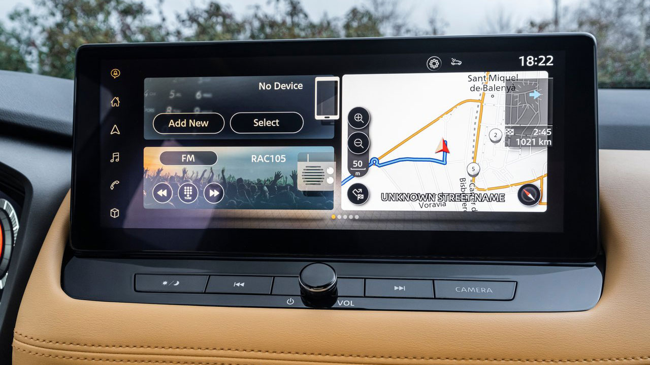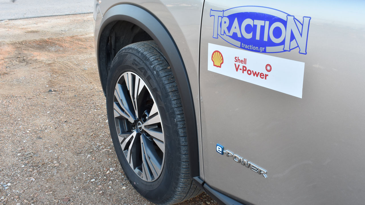 Η “καρδιά” του υβριδικού X-Trail είναι το σύστημα e-Power δεύτερης γενιάς. Αποτελείται από μία μπαταρία υψηλής απόδοσης χωρητικότητας 2,1 kWh, η οποία τροφοδοτεί τους δύο ηλεκτροκινητήρες (ένας σε κάθε άξονα, εξ’ ου και η τετρακίνηση e-4ORCE). Όταν κρίνεται απαραίτητο, ενεργοποιείται το τρικύλινδρο μοτέρ χωρητικότητας 1.497 λτ., το οποίο λειτουργεί αποκλειστικά ως γεννήτρια για την φόρτιση της μπαταρίας. Κάπως έτσι, στην τετρακίνητη έκδοση της δοκιμής, η μέγιστη ισχύς διαμορφώνεται στους 213 ίππους και η ροπή φτάνει τα 330 Nm. Αναφορικά με τις επιδόσεις, τα 0-100 χλμ./ώρα έρχονται σε μόλις 7,0 δλ., εξαιρετική επίδοση για το ογκώδες αμάξωμα των 2.345 κιλών, και η τελική ταχύτητα φτάνει τα 180 χλμ./ώρα. Πάμε και στην κατανάλωση, με τη επίσημη τιμή βάσει WLTP να ορίζεται στα 6,3-6,5 λτ./100 χλμ. σε μεικτές συνθήκες. Θετικό στοιχείο είναι το γεγονός ότι σε αστικές μετακινήσεις, αυτή η τιμή εύκολα μπορεί να επιτευχθεί, ειδικά με το πρόγραμμα ECO επιλεγμένο και το e-PEDAL ενεργό (θα αναφερθούμε σε αυτό στη συνέχεια). Στην πράξη, εμείς στη διάρκεια της δοκιμής είδαμε την μέση τιμή να διαμορφώνεται στα 7,1 λτ./100 χλμ.