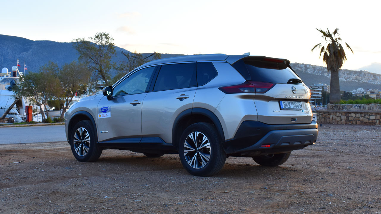Η τέταρτη γενιά του Nissan X-Trail καταφέρνει στην υβριδική της έκδοση θα συνδυάζει όλες τις “αρετές”. Οικονομία και επιδόσεις χωρίς το άγχος της αυτονομίας των αμιγώς ηλεκτρικών είναι το “κλειδί” της επιτυχίας. Σε αστικό περιβάλλον, διανύσαμε σχεδόν το 70% των χιλιομέτρων αθόρυβα, ενώ ο θερμικός κινητήρας όταν ενεργοποιείται είναι θορυβώδης, ειδικά σε πλήρες φορτίο. Η καλή ηχομόνωση ωστόσο κάνει τα πράγματα πολύ καλύτερα! Το τιμόνι δεν διακρίνεται για την κορυφαία πληροφόρηση, αλλά δεν είναι αυτό το ζητούμενο στην κατηγορία. Τα φρένα από την άλλη είναι πολύ ισχυρά και επιβραδύνουν αποτελεσματικά το βαρύ αμάξωμα. Η ανάρτηση είναι “μαγικό χαλί”, απορροφά κάθε κακοτεχνία και προσφέρει άνεση ακόμα και σε “off-road” εξορμήσεις. Ωστόσο, υπό πίεση θα εμφανιστούν οι κλίσεις στο αμάξωμα, αν και δεν θα προβληματίσουν τον οδηγό αν δεν το παρακάνει. Κάπου εδώ να αναφερθούμε και στο e-Pedal, το οποίο ουσιαστικά προσφέρει μέγιστη ανάκτηση και κάνει τον οδηγό να κινείται με το πόδι μόνιμα στο πεντάλ του γκαζιού. Το φρένο χρησιμοποιείται μόνο για απότομη επιβράδυνση ή κάτω από τα 10 χλμ./ώρα, όπου η μέγιστη ανάκτηση του συστήματος απενεργοποιείται. Τα προγράμματα οδήγησης είναι τα εξής πέντε: ECO, NORMAL, SPORT, SNOW και OFF ROAD.