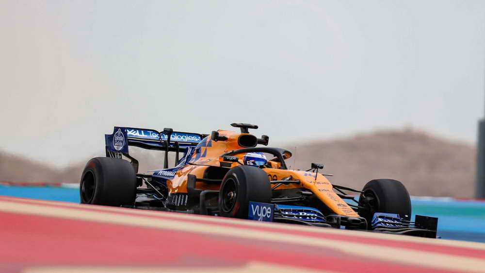 Η πρώτη ημέρα δοκιμών επηρεάστηκε από τις άστατες καιρικές συνθήκες. Καθώς στο Μπαχρέιν ο καιρός είναι συνήθως ηλιόλουστος, οι ομάδες είχαν προετοιμαστεί για δοκιμές σε στεγνό οδόστρωμα με υψηλές θερμοκρασίες, έχοντας μαζί τους μόνο ελαστικά σλικ. Όμως, η κατάσταση διαφοροποιήθηκε εξαιτίας της βροχής που έπεσε το πρωί και το μεσημέρι. Αυτό οδήγησε σε διακοπή της διαδικασίας, με αποτέλεσμα οι πιλότοι να πραγματοποιήσουν λίγους γύρους. Τον ταχύτερο χρόνο της ημέρας σημείωσε ο Max Verstappen (Red Bull-Honda), ενώ τον ακολούθησε ο Mick Schumacher (Ferrari), στην πρώτη του εμφάνιση με τα χρώματα της Scuderia. Την τριάδα σε επίπεδο χρόνων συμπλήρωσε ακόμη ένας νεαρός πιλότος, ο Lando Norris (McLaren-Renault). Μια θέση πιο πίσω βρέθηκε ο Romain Grosjean (Haas-Ferrari), που ήταν ο ταχύτερος πιλότος όσο το οδόστρωμα ήταν στεγνό. Στα αξιοσημείωτα της ημέρας, συγκαταλέγεται η επιστροφή στο cockpit για τον Fernando Alonso, ο οποίος πραγματοποίησε 64 γύρους με McLaren-Renault, για εξέλιξη των ελαστικών της Pirelli ενόψει του 2020.