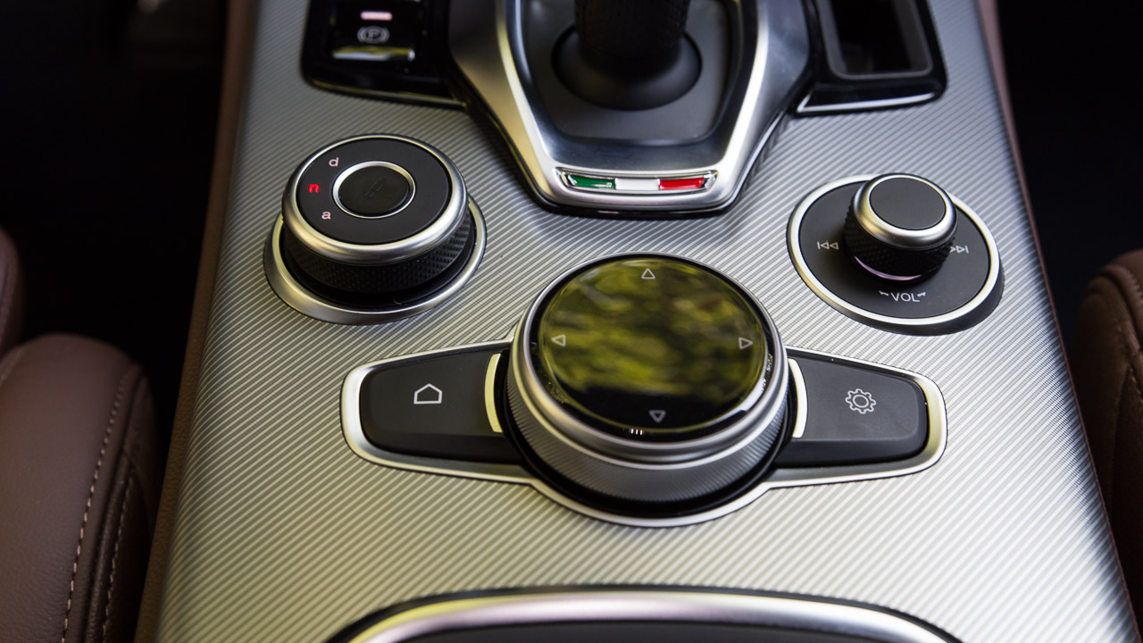 Η κομψότητα που παρατηρείται εξωτερικά είναι εύκολα αντιληπτή και στην προσεγμένη καμπίνα της Stelvio. Τα εμπρός δερμάτινα καθίσματα ρυθμίζονται εύκολα ηλεκτρικά και ποικιλοτρόπως (του οδηγού φέρει και τρεις μνήμες) και ξεχωρίζουν τόσο για τις ποιοτικές επενδύσεις τους όσο και για την πολύ καλή στήριξη που προσφέρουν. Ο οδηγός βρίσκει εύκολα τη θέση που του ταιριάζει ανεξάρτητα σχεδόν από τη διάπλαση του, ενώ γρήγορα εξοικειώνεται τόσο το σύστημα πολυμέσων όσο και με τα χειριστήρια που βρίσκονται πάνω αλλά και γύρω από το τιμόνι. Τη δική του χείρα βοηθείας προσφέρει το μεγάλο περιστροφικό χειριστήριο στην κεντρική κονσόλα για το σύστημα πολυμέσων, το οποίο έχει και ποιοτική αίσθηση κατά τη χρήση του, όπως και τα υπόλοιπα κουμπιά σε αυτή την περιοχή.