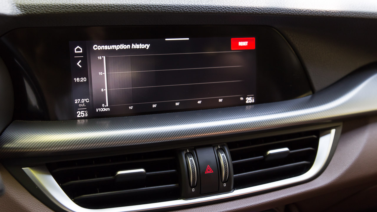 Στο εσωτερικό οι αλλαγές μετά και την ανανέωση που πραγματοποίησαν οι Ιταλοί είναι… υπαρκτές αλλά διακριτικές. Η τεχνολογική και ποιοτική αναβάθμιση της Stelvio ήταν εκείνη που βρέθηκε στο επίκεντρο και έτσι στην κεντρική κονσόλα βλέπουμε πλέον μια νέα οθόνη αφής με διαγώνιο στις 8,8 ίντσες, ενώ μία ακόμη οθόνη δίνει το “παρών” στον πίνακα οργάνων, ανάμεσα στο αναλογικό ταχύμετρο και στροφόμετρο. Παράλληλα το λογισμικό είναι αναβαθμισμένο και προσφέρει ταχύτερη απόκριση, ενώ νέα είναι και τα γραφικά. Μικρές αλλαγές εντοπίζονται στο τιμόνι που φέρει νέα χειριστήρια για το cruise control, αλλά και στην κεντρική κονσόλα με τα νέα και πιο ποιοτικά υλικά και τον επίσης νέο επιλογέα για το αυτόματο κιβώτιο.