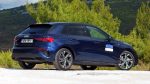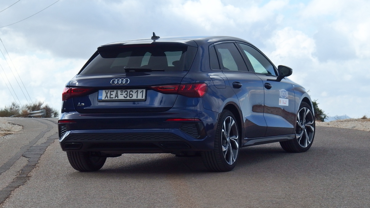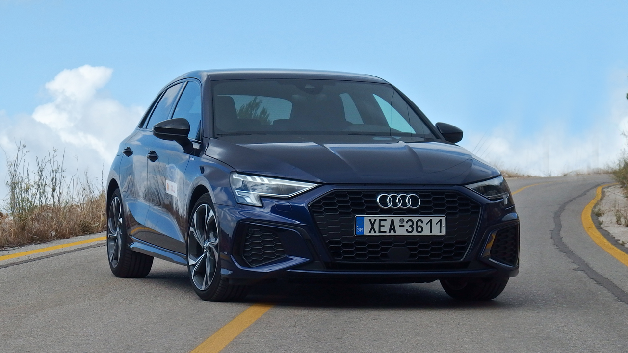 Από την οδική συμπεριφορά του Audi A3 Sportback έχεις πάντοτε αυξημένες προσδοκίες, καθώς στο παρελθόν έχει παρουσιάσει εξαιρετικά δείγματα γραφής, τουλάχιστον όσον αφορά την άνεσή του και την ποιότητα κύλισης. Και δεν σε απογοητεύει. Ίσα ίσα, που επιβεβαιώνει τις προσδοκίες σου και τις υπερκαλύπτει, ακόμη και στο πακέτο S Line. Είναι στιβαρό, άνετο, ήσυχο και μόνο σε απότομες/κοφτές ανωμαλίες του οδοστρώματος νιώθεις να περνά κραδασμός στην καμπίνα. Το τιμόνι έχει σωστό βάρος, ενώ τα φρένα είναι δυνατά και ακούραστα. Το κιβώτιο από την άλλη ακολουθεί την σκέψη του οδηγού, ενώ ακόμη και σε πολύ γρήγορη οδήγηση δεν απογοητεύει. Πάντως θα θέλαμε λίγο μεγαλύτερα χειριστήρια για την αλλαγή σχέσεων πίσω από το τιμόνι. Όσον αφορά το μοτέρ, ο 1.5 TFSI με τους 150 ίππους από τις 5.000 έως και τις 6.000 σ.α.λ. και τα 250 Nm ροπής από τις 1.500 έως και τις 3.500 σ.α.λ. είναι πρόθυμος και επαρκής, ειδικά στο πρόγραμμα Dynamic του Drive Select (μπορείτε να διαλέξτε προγράμματα οικονομίας, άνεσης, δυναμικής συμπεριφοράς, να το έχετε στο αυτόματο ή να φτιάξετε το δικό σας πρόγραμμα). Για το 0-100 χλμ./ώρα το Audi της δοκιμής μας χρειάζεται 8,4 δλ. ενώ η τελική του ταχύτητα είναι στα 224 χλμ./ώρα. Όσον αφορά τη μέση κατανάλωσή του, στην πράξη είδαμε 7,4 λίτρα/100 χλμ. σε μεικτές συνθήκες. Αν οδηγήσετε πιο σβέλτα, θα δείτε κοντά στα 8,2 λίτρα/100 χλμ. ενώ με προσεχτική οδήγηση μπορεί να φλερτάρετε με τα 6,0 λίτρα/100 χλμ. Τιμές λογικές για ένα αυτοκίνητο κοντά στα 1.400 κιλά και με αυτές τις επιδόσεις, οι οποίες οφείλονται φυσικά στο σύστημα απενεργοποίησης των 2 εκ των 4 κυλίνδρων και το ήπια υβριδικό 48βολτο σύστημα.