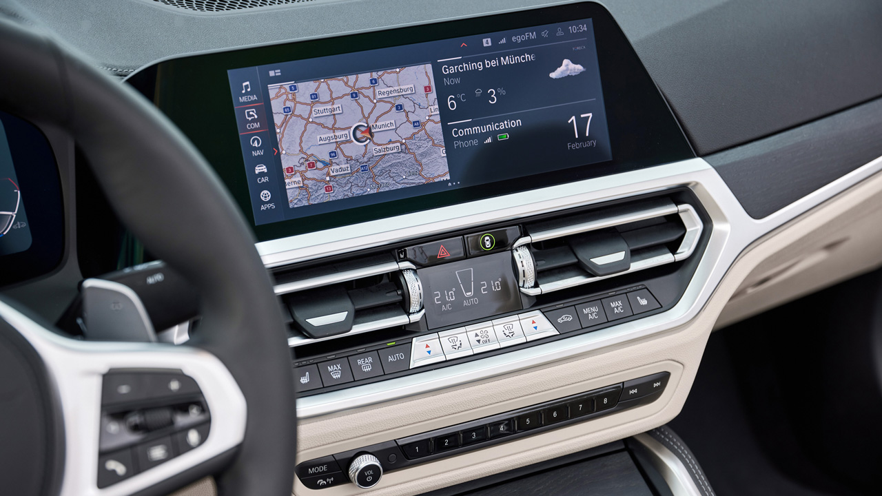 Όπως συμβαίνει σε κάθε μοντέλο της βαυαρικής εταιρείας, η ποιότητα παραμένει η πρώτη προτεραιότητα. Σε κάθε επιφάνεια έχουν τοποθετηθεί κορυφαία υλικά, ενώ η συναρμολόγηση δεν αφήνει περιθώρια για παράπονα. Κορυφαία είναι και η εργονομία, μιας και χρειάζονται μόλις μερικές ώρες ώστε ο οδηγός να εξοικειωθεί πλήρως με την λειτουργία του εκάστοτε συστήματος. Αξιοσημείωτο σε αυτό το σημείο είναι το γεγονός ότι έχουν διατηρηθεί αρκετοί “φυσικοί” διακόπτες, όπως για παράδειγμα αυτοί του κλιματισμού, κάνοντας εύκολη την ρύθμιση κατά την οδήγηση. Εννοείται ότι το εσωτερικό είναι και άκρως ψηφιακό, μιας και πίσω από το τιμόνι υπάρχει μία οθόνη σε ρόλο πίνακα οργάνων. Το μέγεθός της αγγίζει τις 12,3 ίντσες και είναι ιδιαίτερα ευανάγνωστη. Extra bonus για την πληροφόρηση του οδηγού αποτελεί και το head-up display που προβάλει στο παρμπρίζ συστήματα όπως η πλοήγηση. Ασφαλώς από την κεντρική κονσόλα δεν απουσιάζει και η οθόνη αφής μεγέθους 10,25”, μέσω της οποία προβάλλονται οι χάρτες πλοήγησης, οι κάμερες στάθμευσης, το σύστημα τηλεμετρίας (παρέχει ενδιαφέρουσες μετρήσεις, όπως για παράδειγμα οι εγκάρσιες και πλευρικές επιταχύνσεις, αλλά και η live απόδοση του κινητήρα) και πολλά ακόμη συστήματα. Εννοείται πως υπάρχει και δυνατότητα συνδεσιμότητας μέσω Android Auto και Apple CarPlay. Πριν πάμε στους χώρους, αξίζει να αναφερθούμε και στα συστήματα θέρμανσης που προσωπικά μου έδωσαν την δυνατότητα για “ανοιχτές” βόλτες ακόμα και με χαμηλότερες θερμοκρασίας. Αναφέρομαι στα θερμαινόμενα εμπρός καθίσματα, το θερμαινόμενο τιμόνι, αλλά και το σύστημα παροχής θερμού αέρα στον αυχένα από το προσκέφαλο του καθίσματος.