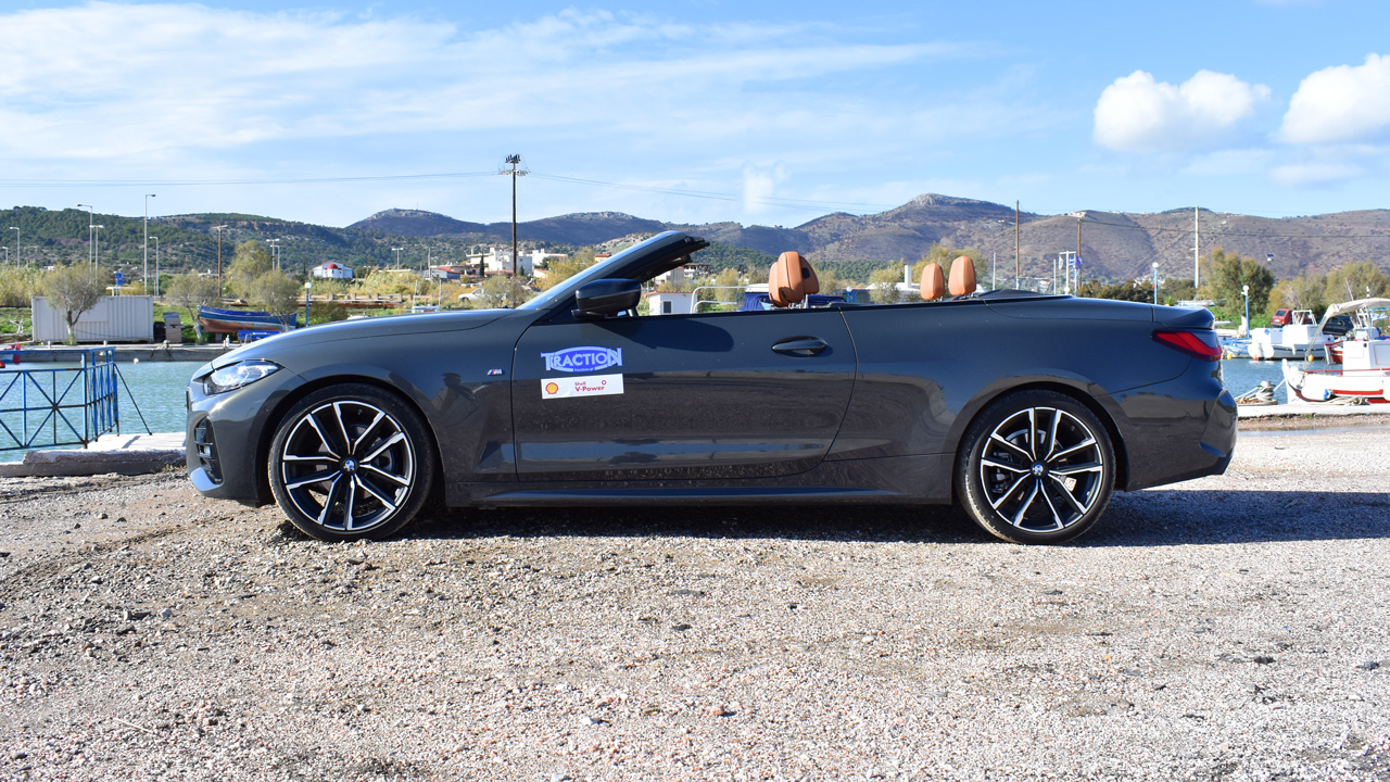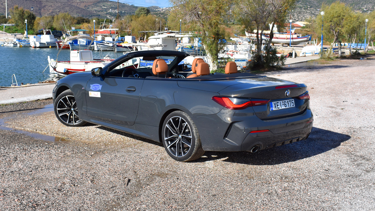 Από ένα μοντέλο με “sportive” DNA, όπως για παράδειγμα η BMW Σειρά 4 Cabrio περιμένει κανείς και τις ανάλογες επιδόσεις. Στην περίπτωση της βασικής έκδοσης BMW 420i Cabrio, μπορεί τα 1.765 κιλά να μην αφήνουν τον κινητήρα να “βάλει” φωτιά στην άσφαλτο, αλλά ασφαλώς δεν στερείται επιδόσεων. Κάτω από το καπό κρύβεται ένα τετρακύλινδρο, υπερτροφοδοτούμενο μοτέρ βενζίνης με τέσσερις επικεφαλής εκκεντροφόρους. Η χωρητικότητά του αγγίζει τα 1.998 κ.εκ. και η ισχύς φτάνει τους 184 ίππους στις 5.000 σ.α.λ. Την ίδια ώρα, η μέγιστη ροπή των 300 Nm είναι εφικτή από τις μόλις 1.350 σ.α.λ. και διατηρείται έως τις 4.000 σ.α.λ. Η κίνηση περνά στον πίσω άξονα αποκλειστικά με αυτόματο κιβώτιο 8 σχέσεων και για τα 0-100 χλμ./ώρα απαιτούνται 8,2 δλ. (η τελική ταχύτητα φτάνει τα 236 χλμ./ώρα). Όσο για την κατανάλωση, μπορεί σε τέτοια αυτοκίνητα να έρχεται σε δεύτερη μοίρα, αλλά τα 7,7 λτ./100 χλμ. που είδαμε στον υπολογιστή ταξιδιού είναι μια άκρως φυσιολογική μέση τιμή (5,7-6,1 λτ./100 χλμ. ανακοινώνει η BMW κατά WLTP), η οποία μπορεί να πέσει και στα 7,0 λίτρ/100 χλμ. αν έχεις ως προτεραιότητά σου την οικονομική οδήγηση.
