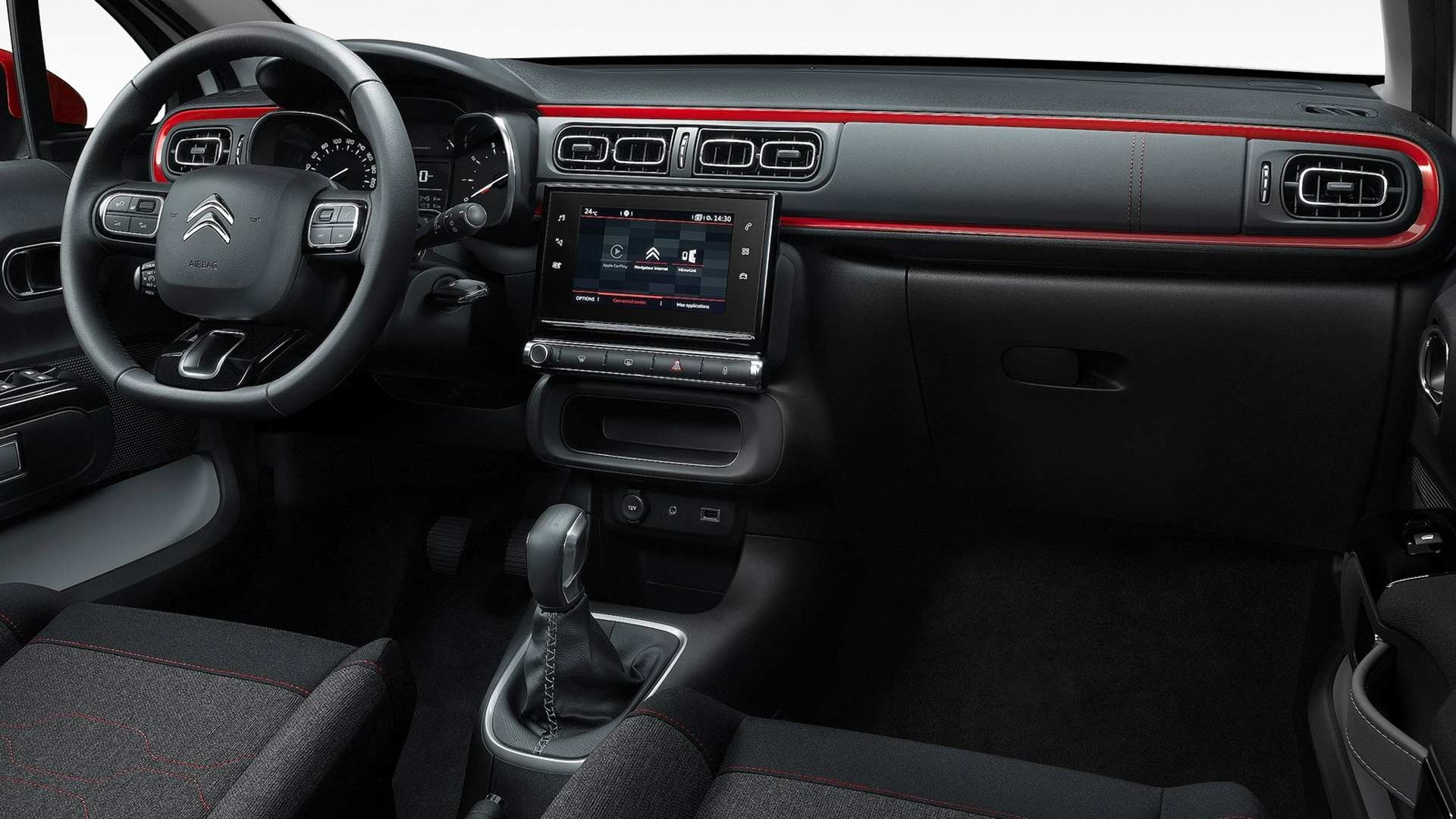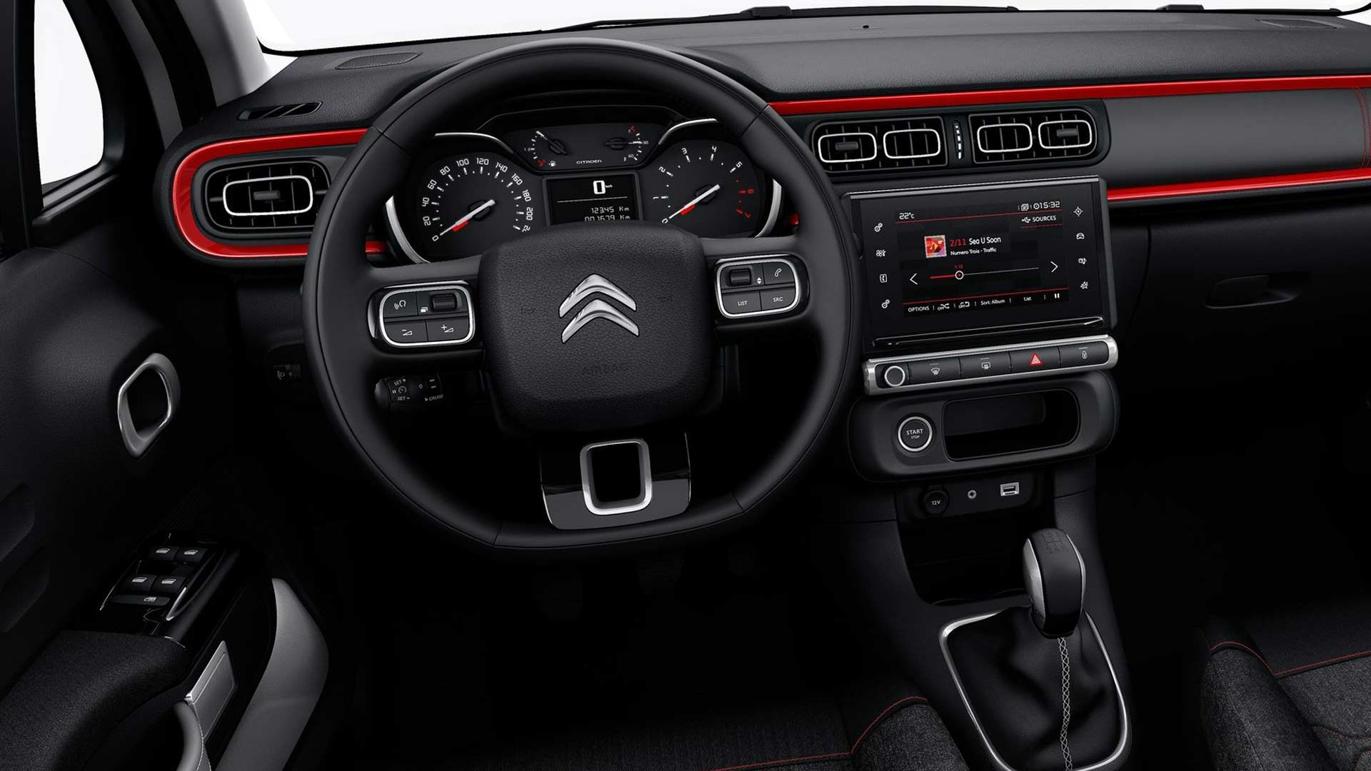 Ανάλογες είναι και οι αλλαγές στο εσωτερικό του Citroen C3 Sport, καθώς χωρίς να αλλάζουν δραματικά τον χαρακτήρα του, του χαρίζουν μία πιο σπορ εικόνα. Σε αυτό συμβάλει το μαύρο χρώμα το οποίο κυριαρχεί στην καμπίνα μαζί με τις κόκκινες λεπτομέρειες στο ταμπλό αλλά και το σατινέ χρώμιο σε διάφορα σημεία. Το τιμόνι είναι δερμάτινο και διαθέτει χειριστήρια, ενώ η υφασμάτινη επένδυση του σαλονιού (Capsule Red την ονομάζουν οι Γάλλοι) είναι αρκετά ποιοτική και ξεχωριστή. Από εκεί και πέρα το Citroen C3 Sport είναι όπως το έχουμε συνηθίσει και στις υπόλοιπες εκδόσεις του. O αναλογικός πίνακας οργάνων είναι ευανάγνωστος, με αρκετά μεγάλη ψηφιακή οθόνη ανάμεσα στα αναλογικά όργανα, για τις ενδείξεις του υπολογιστή ταξιδιού. Στο κέντρο του ταμπλό υπάρχει έγχρωμη οθόνη αφής 7 ιντσών, με τρισδιάστατη πλοήγηση, από την οποία χειρίζεσαι όλες τις λειτουργίες του αυτοκίνητου, εκτός από την ένταση του ηχοσυστήματος, το κεντρικό κλείδωμα, τα αλάρμ και το ξεθάμπωμα του εμπρός και του πίσω παρμπρίζ (υπάρχουν φυσικά κουμπιά, κάτω ακριβώς από την οθόνη). Η καμπίνα είναι ευρύχωρη με σκληρά ως επί το πλείστον υλικά (υπάρχει μαλακή επένδυση στο εμπρός μέρος του ταμπλό, στην πλευρά του συνοδηγού). Οι χώροι ικανοποιούν, θήκες για μικροαντικείμενα υπάρχουν αρκετές, οι ποτηροθήκες δεν ενοχλούν στο σημείο που έχουν τοποθετηθεί και οι τσέπες των θυρών εμπρός είναι μεγάλες. Ο χώρος αποσκευών από την άλλη είναι στα 300 λίτρα και με την αναδίπλωση του πίσω καθίσματος φτάνει στα 922 λίτρα.