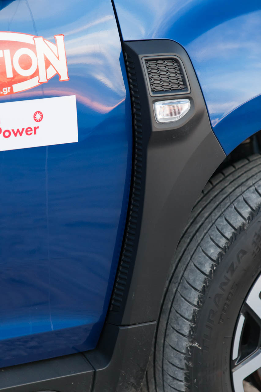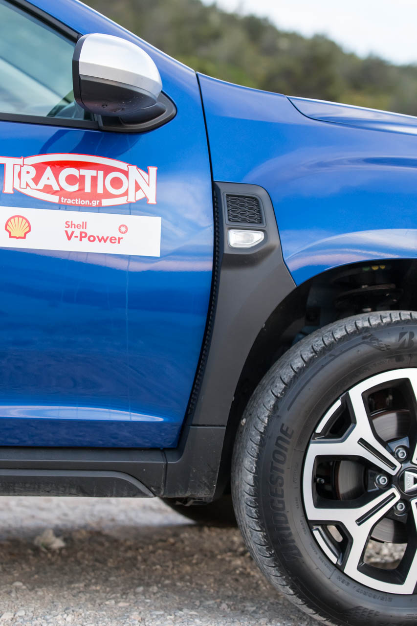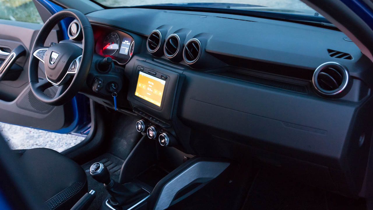 Ο οδηγός έχει μπροστά του έναν πίνακα που συνδυάζει τις αναλογικές με τις ψηφιακές ενδείξεις και παρουσιάζει όλες τις απαραίτητες πληροφορίες στα μάτια του. Αριστερά του τιμονιού “φιλοξενείται” και ο πίνακας ελέγχου του συστήματος υγραερίου, που ενημερώνει για την ποσότητα που υπάρχει ακόμη στη δεξαμενή, ενώ δίνει τη δυνατότητα στον οδηγό να αλλάξει τροφοδοσία μεταξύ υγραερίου και βενζίνης. Τα γαλλικής φιλοσοφίας χειριστήρια στην κολόνα του τιμονιού προέρχονται από το Group Renault, βρίσκονται στις σωστές θέσεις και κάνουν την εμφάνιση τους και στην κεντρική κονσόλα με πιο χαρακτηριστικά από αυτά τα κομψά περιστροφικά χειριστήρια για τον κλιματισμό. Πολύ καλή είναι και η θέση οδήγησης που προσφέρει ικανοποιητικό εύρος ρυθμίσεων τόσο για το άνετο κάθισμα με την μέτρια πλευρική στήριξη όσο και για το τιμόνι και θα εξυπηρετήσει ένα μεγάλο εύρος σωματότυπων. Στην πλούσια εξοπλισμένη έκδοση Prestige της δοκιμής βλέπουμε και οθόνη αφής επτά ιντσών για το σύστημα πολυμέσων αλλά και τέσσερις (!) συνολικά κάμερες που προσφέρουν δυνατότητα θέασης μπροστά αλλά και στα πλαϊνά του Duster. Το τελευταίο είναι έως και… σωτήριο αν χώρος που παρκάρετε έχει περιορισμένο πλάτος ή κρύβει κινδύνους που δεν φαίνονται με το μάτι.