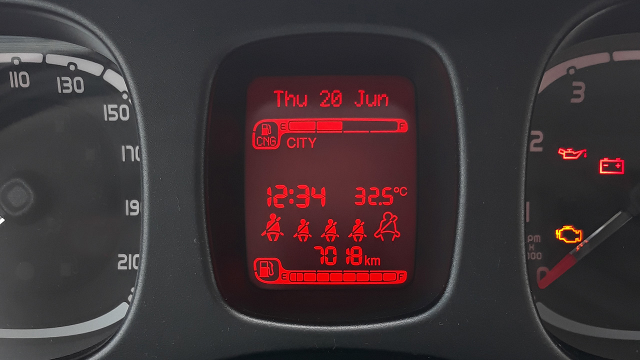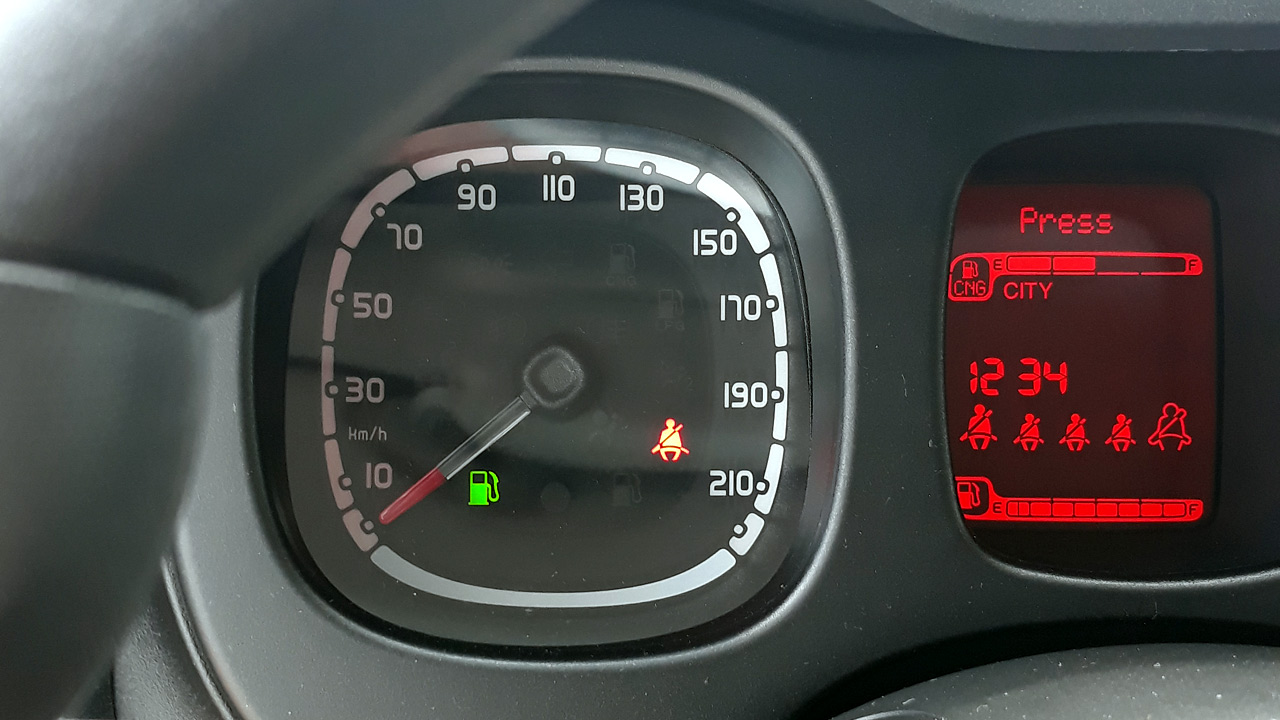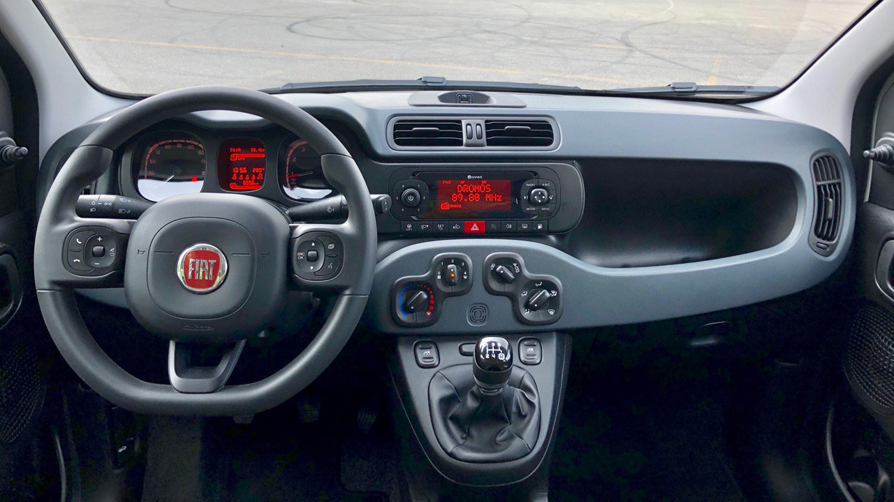 Όπως συμβαίνει και στην περίπτωση του αμαξώματος έτσι και στο εσωτερικό δεν υπάρχουν κάποιες διαφορές. Μόνο όταν γυρίσεις τον διακόπτη στη μίζα και ο πίνακας οργάνων ζωντανέψει, καταλαβαίνεις πως πρόκειται για έκδοση φυσικού αερίου, αφού στην ψηφιακή οθόνη υπάρχουν δύο ενδείξεις στάθμης καυσίμου. Μία για τη βενζίνη και μία για το φυσικό αέριο, αλλά και μία πράσινη ενδεικτική λυχνία που απεικονίζει την αντλία βενζινάδικου. Ακόμη μία αλλαγή είναι αυτή της προσθήκης κουμπιού για την εναλλαγή σε βενζίνη, στο ταμπλό, κάτω από το ηχοσύστημα. Ακόμη μία αλλαγή, που δεν αφορά όμως την αισθητική αλλά την πρακτικότητα, εντοπίζεται στον χώρο αποσκευών ο οποίος έχει μειωθεί μόλις κατά 25 λίτρα, φτάνοντας πλέον στα 200 λίτρα. Κατά τα άλλα, η ποιότητα και η ευρυχωρία του Fiat Panda είναι στα ίδια καλά επίπεδα για την κατηγορία, με αυτή των αντίστοιχων συμβατικών εκδόσεών του.