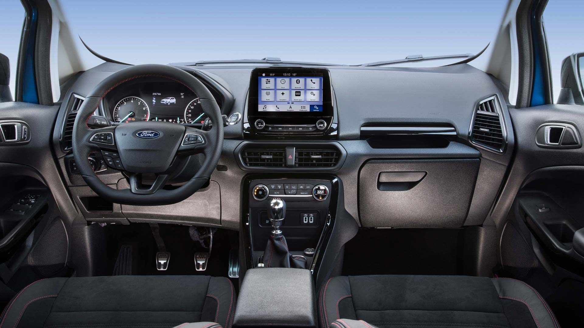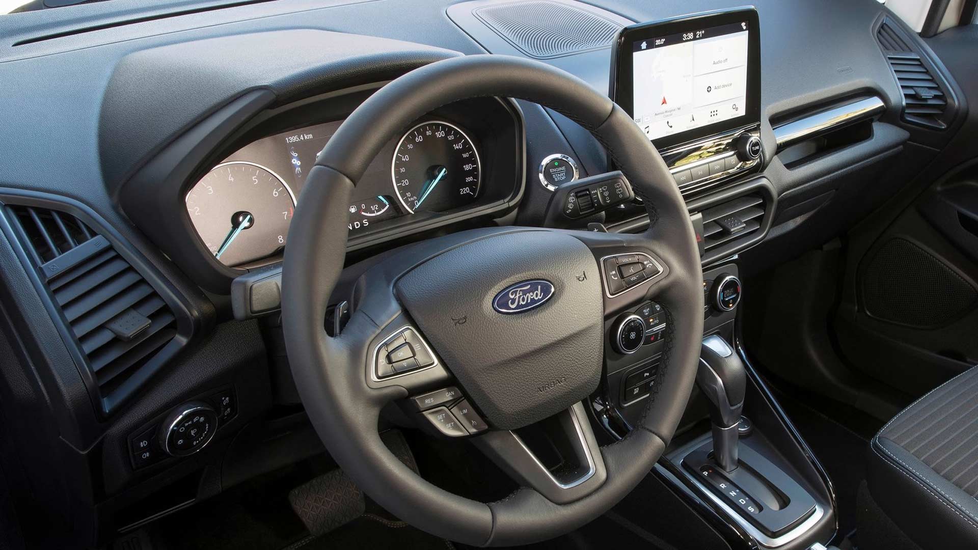 Το εσωτερικό του Ford EcoSport είναι πλέον στα καλύτερά του. Η βελτίωση της ποιότητας είναι απτή και αισθητή από την πρώτη στιγμή, χάρη στο μαλακά υλικό που ντύνει πλέον το ταμπλό. Η συναρμογή δεν έχει ατέλειες, ενώ το φινίρισμα είναι αψεγάδιαστο. Φυσικά την παράσταση κλέβει η έγχρωμη οθόνη αφής μεγέθους 8,0 ιντσών, για το σύστημα πολυμέσων SYNC 3. Ο πίνακας οργάνων είναι ευανάγνωστος και έχει αναλογικές ενδείξεις, ενώ στο κέντρο του υπάρχει έγχρωμη, ψηφιακή οθόνη 4,2 ιντσών για τον υπολογιστή ταξιδιού. Το ησχοσύστημα B&O είναι από τα καλύτερα που συναντάμε στην κατηγορία (έχει 10 ηχεία και Subwoofer). Οι χώροι είναι άνετοι για τέσσερις επιβάτες, ενώ τρίτος στη μέση του πίσω καθίσματος θα χωρέσει με μικρές παραχωρήσεις. Το τούνελ μετάδοσης στο δάπεδο πάντως δεν εξέχει έντονα. Οι χώροι για μικροαντικείμενα είναι πολλοί, ευρύχωροι και διάσπαρτοι στην καμπίνα, γεγονός που αυξάνει την πρακτικότητα. Ο χώρος αποσκευών είναι στα 356 λίτρα και με την αναδίπλωση των πίσω καθισμάτων (διαιρούμενα σε αναλογία 60:40) φτάνει στα 1.240 λίτρα.