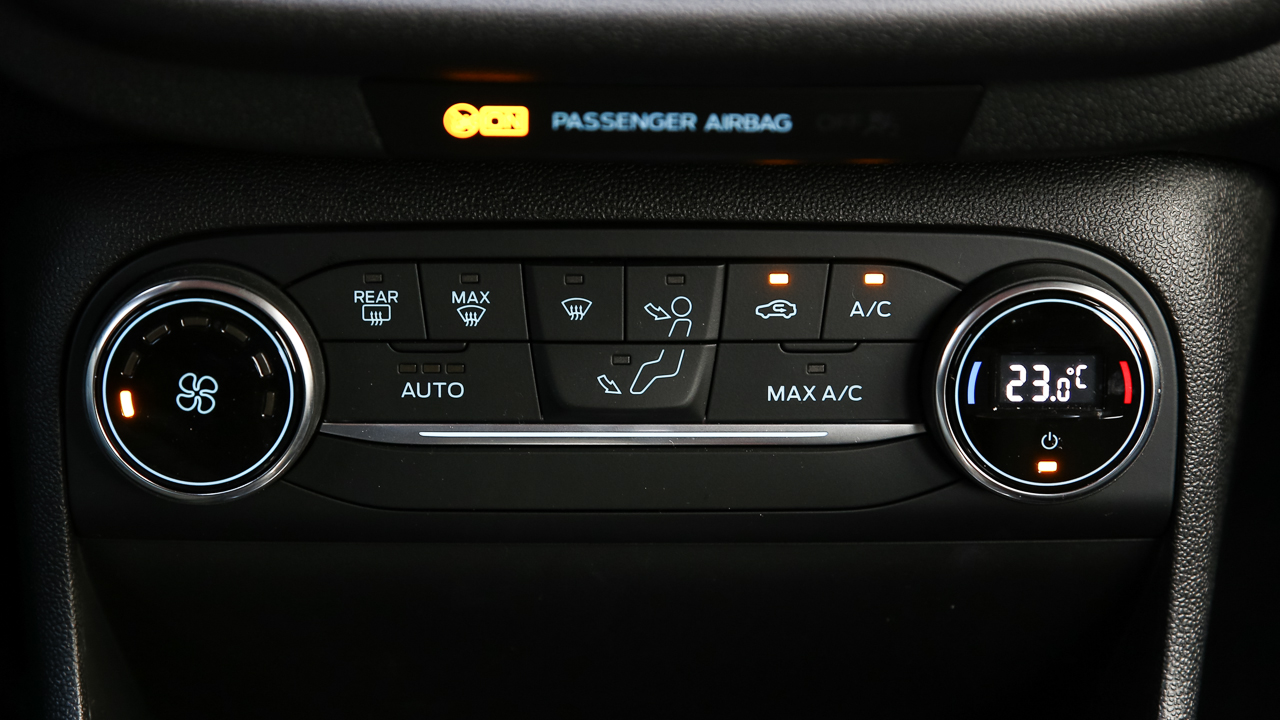 Και αν εκ πρώτης όψης δεν βρήκαμε αλλαγές, το υβριδικό Fiesta μας αποζημιώνει με την τεχνολογία κάτω από το αμάξωμά του. Συγκεκριμένα, διαθέτει ενσωματωμένη μίζα/γεννήτρια (BISG) με κίνηση μέσω ιμάντα για την ανάκτηση και αποθήκευση της ενέργειας κατά το φρενάρισμα και το ρολάρισμα στο κύκλωμα 48V. Ως είθισται σε τέτοιες περιπτώσεις το σύστημα λειτουργεί και σαν μοτέρ υποβοηθώντας τον κινητήρα προσθέτοντας ως και 24 Nm ροπής. Πάνω από όλα όμως έλυσε τα χέρια των μηχανικών που μπόρεσαν να τοποθετήσουν μεγαλύτερη τουρμπίνα. Και κάπως έτσι φτάσαμε στους 155 ίππους στις 6.000 σ.α.λ. και στα 220 Nm ροπής στις 3.000 σ.αλ. Τιμές που χαρίζουν 0-100 χλμ./ώρα σε 8,9 δλ. και τελική ταχύτητα στα 219 χλμ/ώρα. Όσον αφορά στις περιβαλλοντικές επιδόσεις, η εταιρεία κάνει λόγο για μέση κατανάλωση 4,0 λίτρα/100 χλμ. και εκπομπές CO2 στα 92 γρ./χλμ. (κύκλος μέτρησης NEDC). Στην πράξη εμείς κινηθήκαμε σε πραγματικές συνθήκες με 6,6 λίτρα/100 χλμ. Τιμή εξαιρετική για αυτοκίνητο 155 ίππων!