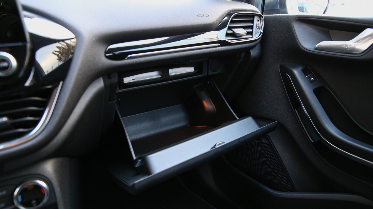 Χώροι για μικροαντικείμενα και ποτήρια σαφώς και υπάρχουν στην καμπίνα του Fiesta με μικρές θήκες για επιπλέον πράγματα και στις πόρτες. Μπροστά από τον επιλογέα θα βρείτε επίσης χώρο για να αφήσετε το κινητό σας με το Ford να τα καταφέρνει καλά και στον χώρο αποσκευών. Με μήκος ελαφρώς πάνω από τα τέσσερα μέτρα (4.040 χλστ.) και πλάτος στα 1.735 χλστ. χωρίς τους καθρέπτες, το πορτμπαγκάζ του Fiesta έχει χωρητικότητα 303 λίτρα, με τα καθίσματα στη θέση τους, και 984 λίτρα όταν αυτά αναδιπλωθούν και το φορτώσετε μέχρι την οροφή. Ο χώρος είναι καλός για τα μέτρα της κατηγορίας, όπως καλοί είναι και οι χώροι της καμπίνας για τέσσερα άτομα, με τους πίσω να μην αντιμετωπίζουν προβλήματα με τα γόνατα και το κεφάλι τους. Όσο για τις διαφορές της υβριδικής έκδοσης… αυτές έχουν να κάνουν μόνο με τις ψηφιακές ενδείξεις στον πίνακα οργάνων!