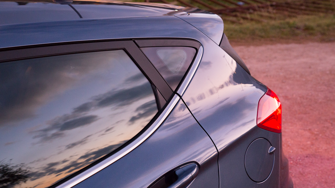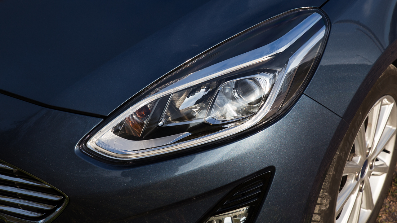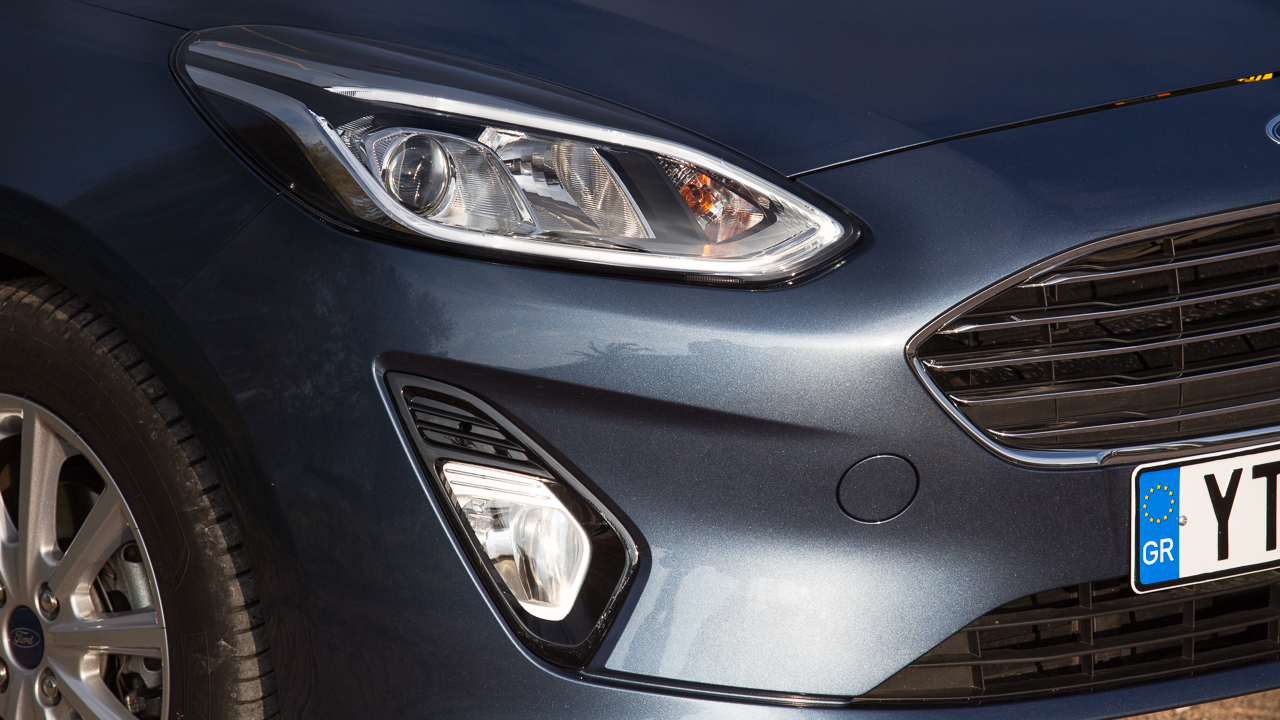 Η έκδοση Titanium ξεχωρίζει εξωτερικά από τις υπόλοιπες χάρη στις μετρημένες δόσεις χρωμίου που παρατηρούνται στο αμάξωμα σε σημεία κλειδιά, στις γρίλιες της μεγάλης εμπρός μάσκας αλλά και στις πόρτες. Το χρώμιο, σε συνδυασμό με τις 16άρες ζάντες αλουμινίου με τα δέκα μπράτσα και την “πλούσια” μεταλλική βαφή (Chrome Blue ονομάζεται και είναι έξτρα), προσθέτουν τις σωστές δόσεις κομψότητας στο αμάξωμα του Fiesta και τονίζουν ακόμη περισσότερο την εκλεπτυσμένη σχεδίαση ειδικά του εμπρός μέρος που δεν πάει πίσω ούτε σε δυναμισμό. Ο τελευταίος τονίζεται ακόμη περισσότερο από τα περιμετρικά των εμπρός φωτιστικών σωμάτων φώτα ημέρας που κάνουν το Fiesta να δείχνει ακόμη πιο μοντέρνο και σπορ.