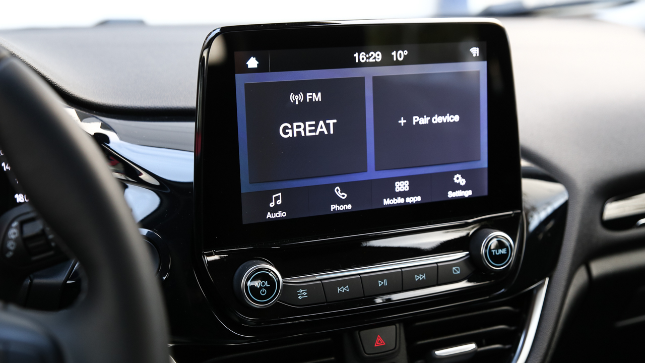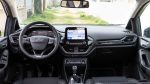 Η θέση οδήγησης του Fiesta είναι εξαιρετική και δεν με δυσκόλεψε καθόλου στο να βρω ιδανικές αποστάσεις από τιμόνι και πεντάλ με τις ρυθμίσεις που προσφέρει το κάθισμα να με βοηθούν να βολευτώ γρήγορα. Γύρω μου υπάρχουν πολλά φυσικά και φωτιζόμενα κουμπιά, τα οποία ωστόσο έχουν σωστή διάταξη και απαιτούν ελάχιστο χρόνο εξοικείωσης για να μάθω τι βρίσκεται πού. Το βράδυ δε, σε συνδυασμό και με τον κρυφό τυρκουάζ ατμοσφαιρικό φωτισμό, στις πόρτες και μπροστά από τα πόδια οδηγού και συνοδηγού, θυμίζει λίγο cockpit αεροσκάφους. Στο κέντρο του ταμπλό, σε σωστό ύψος, δεσπόζει η μεγάλη οθόνη αφής των 8 ιντσών του συστήματος πολυμέσων SYNC 3, η οποία διακρίνεται για τα κομψά γραφικά και την υψηλή ευκρίνεια της, την γρήγορη απόκριση αλλά και την ευκολία που δίνει πρόσβαση στα διάφορα υπομενού του συστήματος.
