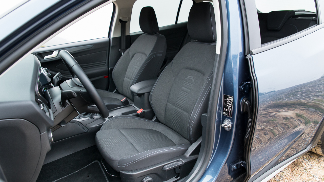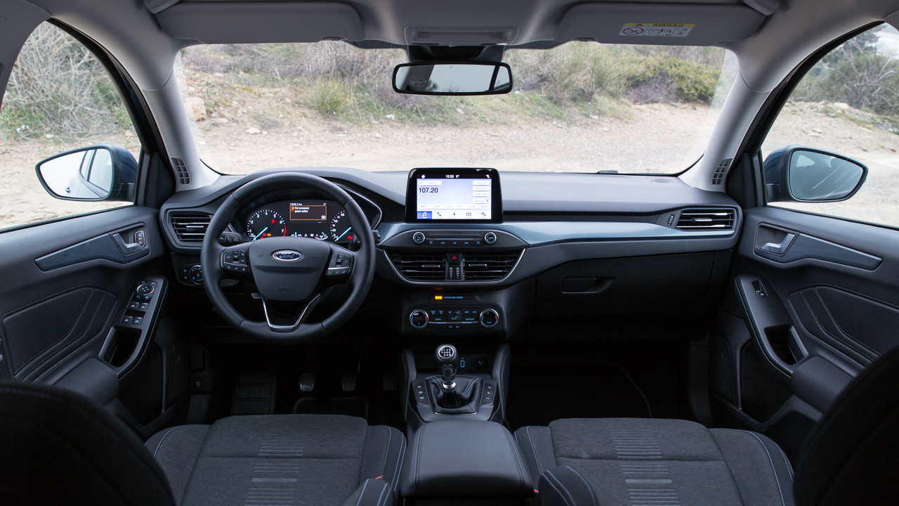 Στο εσωτερικό δεν υπάρχουν αλλαγές σε σχέση με το χαμηλότερο Focus. Οι ποιοτικές επενδύσεις των καθισμάτων είναι ωστόσο διαφορετικές και αποκλειστικές για την έκδοση Active, που φέρει επίσης και αλουμινένια μαρσπιέ στις πόρτες με την ονομασία της έκδοσης. Κατά τα άλλα η ποιοτική και λειτουργική εικόνα που χαρακτηρίζει το εσωτερικό του Focus είναι και εδώ παρούσα στο ακέραιο. Τα φωτιζόμενα κουμπιά στο ταμπλό έχουν σωστή διάταξη και συνηθίζονται γρήγορα, η οθόνη του SYNC 3 συστήματος πολυμέσων της Ford βρίσκεται σε περίοπτη θέση και απαιτεί ελάχιστο χρόνο εξοικείωσης ενώ ο οδηγός βρίσκει πολύ εύκολα τη θέση οδήγησης που του ταιριάζει. Χώροι για μικροαντικείμενα υπάρχουν τόσο στη κεντρική κονσόλα όσο και στις θήκες των θυρών, ενώ, πέρα από το κλασικό μεγάλο ντουλάπι μπροστά από τον συνοδηγό βλέπουμε και ένα σαφώς μικρότερο αριστερά του τιμονιού, επίσης για μικρά αντικείμενα.