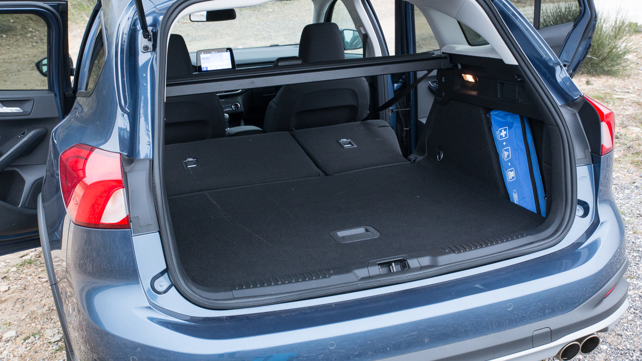 Το wagon αμάξωμα του Focus των 4.693 χλστ. λύνει παράλληλα τα χέρια στον τομέα των διαθέσιμων χώρων. Δύο επιβάτες θα κάτσουν με ιδιαίτερη άνεση στα εμπρός καθίσματα, όπως και στο hatchback άλλωστε, ενώ κάτι παραπάνω από φιλικός είναι και ο χώρος για τους πίσω επιβαίνοντες που έχουν παράλληλα άπλετο χώρο για τα γόνατα τους αλλά και τα κεφάλια τους. Με το μεταξόνιο των 2.700 χλστ. να είναι ίδιο και στις δύο περιπτώσεις, η διαφορά εντοπίζεται στο διαθέσιμο χώρο για τα κεφάλια των πίσω επιβατών που παρουσιάζεται αυξημένος κατά 43 χλστ. έναντι του hatchback και φυσικά στο χώρο αποσκευών. Εκεί το wagon Focus δείχνει ότι μπορεί να καλύψει με περισσή άνεση τις ανάγκες μιας 4μελούς οικογένειας με τη χωρητικότητα να αγγίζει τα 608 λίτρα με τα καθίσματα στη θέση τους (375 στο 5θυρο) και να φτάνει έως και τα 1.653 λίτρα με την αναδίπλωση τους. Το πάτωμα είναι διπλό, για επιπλέον χρηστικότητα, στα τοιχώματα βλέπουμε γάντζους, ενώ η Ford αναφέρει ότι ο επίπεδος και πρακτικός χώρος του πορτμπαγκάζ έχει σχεδιαστεί έτσι ώστε να μπορεί να φιλοξενήσει ακόμη και ένα μεγάλο box μεταφοράς σκύλων.