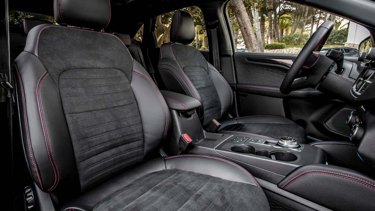 Όπως είναι φυσικό, στο νέο Ford Kuga, σχεδιασμένο από το μηδέν είναι και το εσωτερικό. Σε αυτό συναντάμε ποιοτικά υλικά, προσεγμένη εργονομία και κυρίως χώρους και πρακτικότητα. Η ψηλή θέση οδήγησης προσφέρει πολύ καλή πλευρική στήριξη, ενώ η περιμετρική ορατότητα είναι πολύ καλή. Θήκες υπάρχουν πολλές για μικροαντικείμενα, ενώ στο πίσω κάθισμα μπορούν να χωρέσουν τρεις ενήλικες μέτριου αναστήματος. Φυσικά, από το ταμπλό δεν λείπει η έγχρωμη οθόνη αφής, στάνταρ 8 ιντσών, με το σύστημα πολυμέσων SYNC3. Ιδιαίτερο ενδιαφέρον παρουσιάζει και η ύπαρξη του FordPass Connect, που προσφέρει τη δυνατότητα σύνδεσης στο wi-fi του αυτοκινήτου έως και 10 συσκευών, αλλά και απομακρυσμένο έλεγχο μέσω του FordPass App. Όσον αφορά τον χώρο αποσκευών, αυτός είναι στα 475 λτ. και μπορεί να αυξηθεί στα 645 λτ. καθώς το πίσω κάθισμα μετακινείται εμπρός/πίσω (1.530 λίτρα φορτωμένο μέχρι την οροφή).