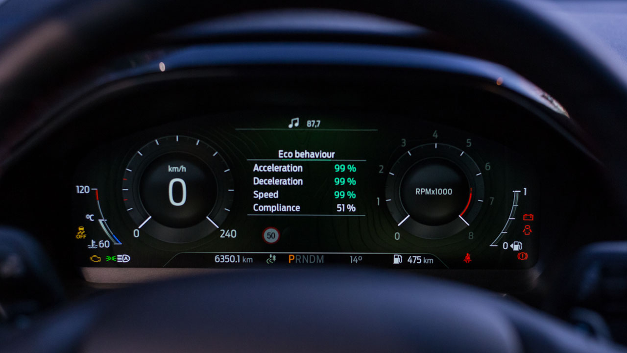 Στο πρόγραμμα Eco το βάρος πέφτει στην οικονομία καυσίμου με το μοτέρ να γίνεται πιο ράθυμο στην απόκριση του και το κιβώτιο να αλλάζει νωρίς σχέσεις ώστε να φτάσει γρήγορα στην 6η ή 7η ταχύτητα και να τις κρατήσει παράλληλα όσο μπορεί. Τα πράγματα μπαίνουν σε μια… κανονικότητα στο Normal όπου ο κινητήρας ξεκινά να δείχνει τον πραγματικά ευχάριστο χαρακτήρα του με άμεση απόκριση από πολύ χαμηλά και το κιβώτιο να αλλάζει τις σχέσεις σε υψηλότερες περιστροφές.