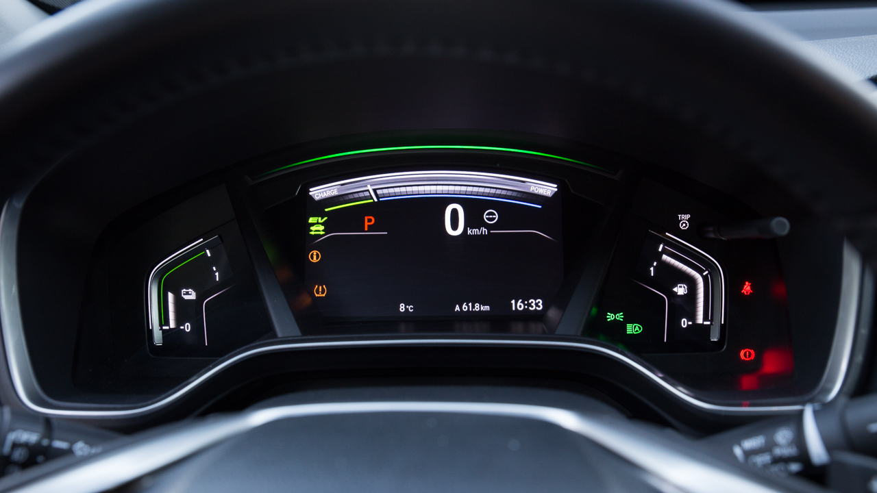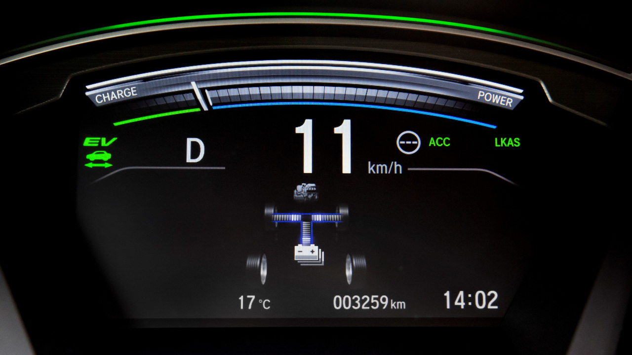 Το υβριδικό σύστημα της ιαπωνικής εταιρίας εναλλάσσει αυτόματα τη λειτουργία του σε τρία διαφορετικά στάδια και ανάλογα με τις ανάγκες κίνησης. Το πρώτο και πιο… ήσυχο από όλα τα στάδια είναι το EV Drive όπου την κίνηση αναλαμβάνει αποκλειστικά ο ηλεκτρικός κινητήρας τροφοδοτούμενος από την συστοιχία μπαταριών, χωρίς να λειτουργεί ο κινητήρας εσωτερικής καύσης. Αυτό μπορεί να το κάνει για λίγα χιλιόμετρα έως ότου οι μπαταρίες του μόλις ενός kWh αποφορτιστούν έως ένα συγκεκριμένο κατώτερο σημείο. Όταν οι μπαταρίες εξαντληθούν το σύστημα γυρνά αυτόματα στην υβριδική λειτουργία Hybrid Drive, όπου το μοτέρ βενζίνης συνεργάζεται με το δευτερεύον ηλεκτρικό μοτέρ για να παράγει ρεύμα και να το στείλει στον ηλεκτρικό κινητήρα. Αυτός συνεχίζει να αποτελεί το μοτέρ που κινεί το CR-V παίρνοντας παράλληλα ρεύμα και από τις μπαταρίες, που με τη σειρά τους φορτίζονται όταν χρειαστεί από την γεννήτρια.