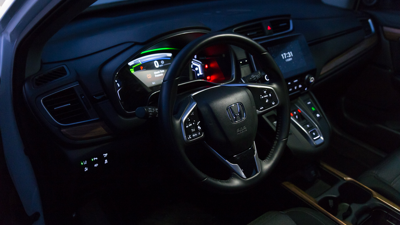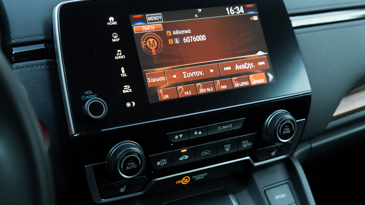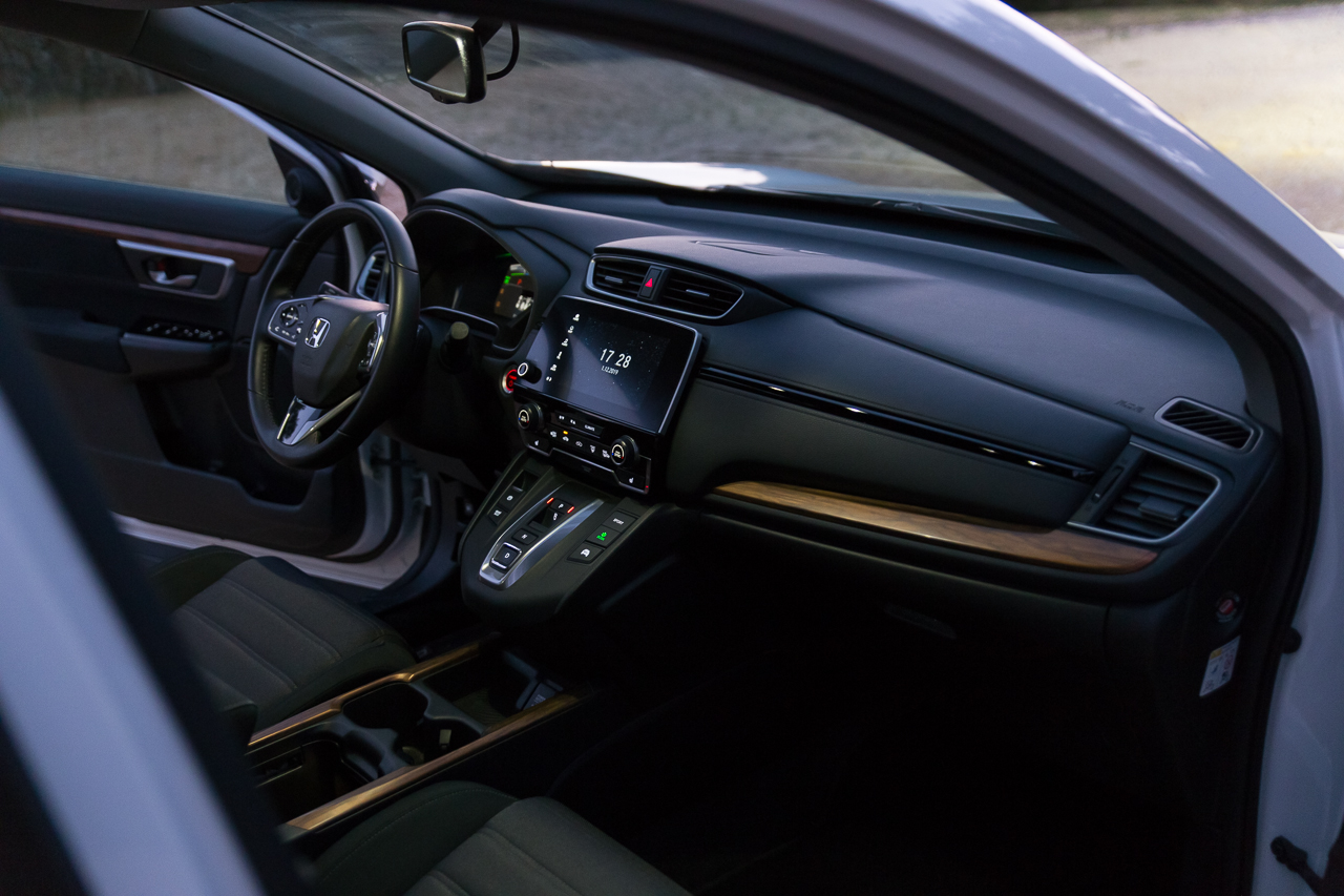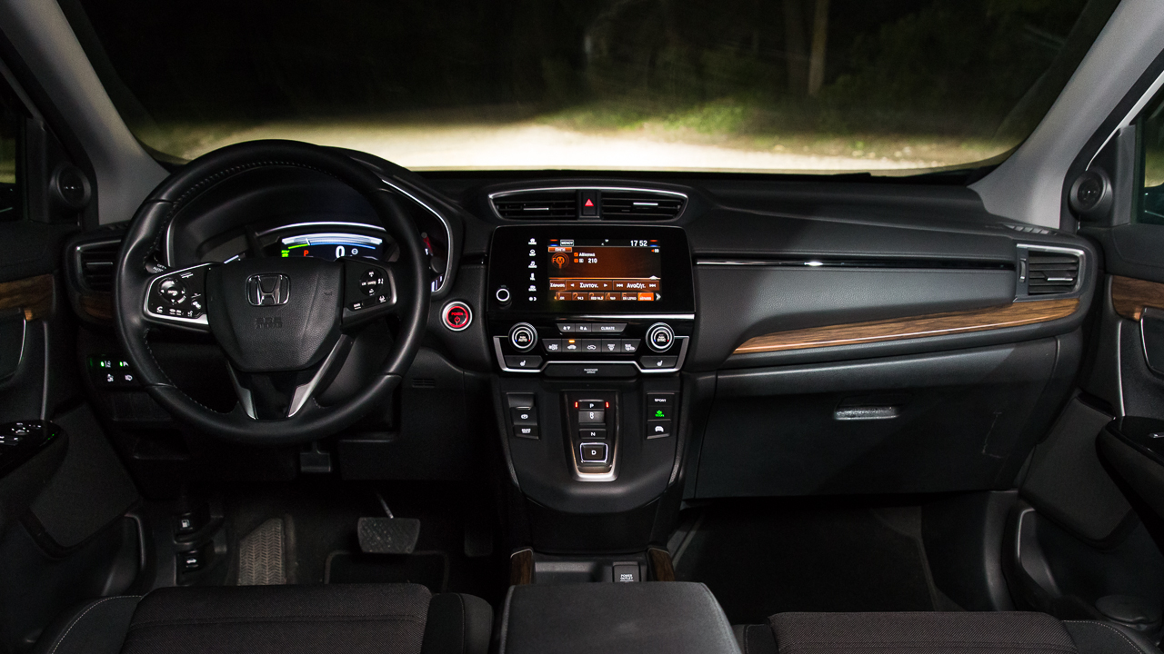 Στο δρόμο το CR-V Hybrid παρουσιάζει μια μεστή εικόνα που χαρακτηρίζεται από πολύ καλή ποιότητα κύλισης και χαμηλά επίπεδα θορύβου. Μέχρι και ενεργή γρίλια έχιε που κλείνει όταν δεν χρειάζεται έξτρα ψύξη ο κινητήρας αλλά και ενεργό σύστημα ακύρωσης ήχων στην καμπίνα. Ο οδηγός δεν δυσκολεύεται να βρει τη θέση οδήγησης που του ταιριάζει ενώ μικρό χρονικό διάστημα εξοικείωσης θα περάσει για να συντηρηθεί τη διάταξη των κουμπιών σε τιμόνι και ταμπλό. Στο κέντρο του τελευταίου δεσπόζει η οθόνη αφής τους συστήματος πολυμέσων της Honda που μπορεί να παραμετροποιηθεί μερικώς αναφορικά με τις ενδείξεις και τα χρώματα της και παρουσιάζει τις πληροφορίες με κατανοητό τρόπο. Το επίπεδο εξοπλισμού στην έκδοση Elegance είναι ιδιαίτερα πλούσιο τόσο στον τομέα της άνεσης όσο και σε εκείνον της ασφάλειας και αυτό συνεισφέρει στην άνεση των επιβατών σε όλες τις συνθήκες.