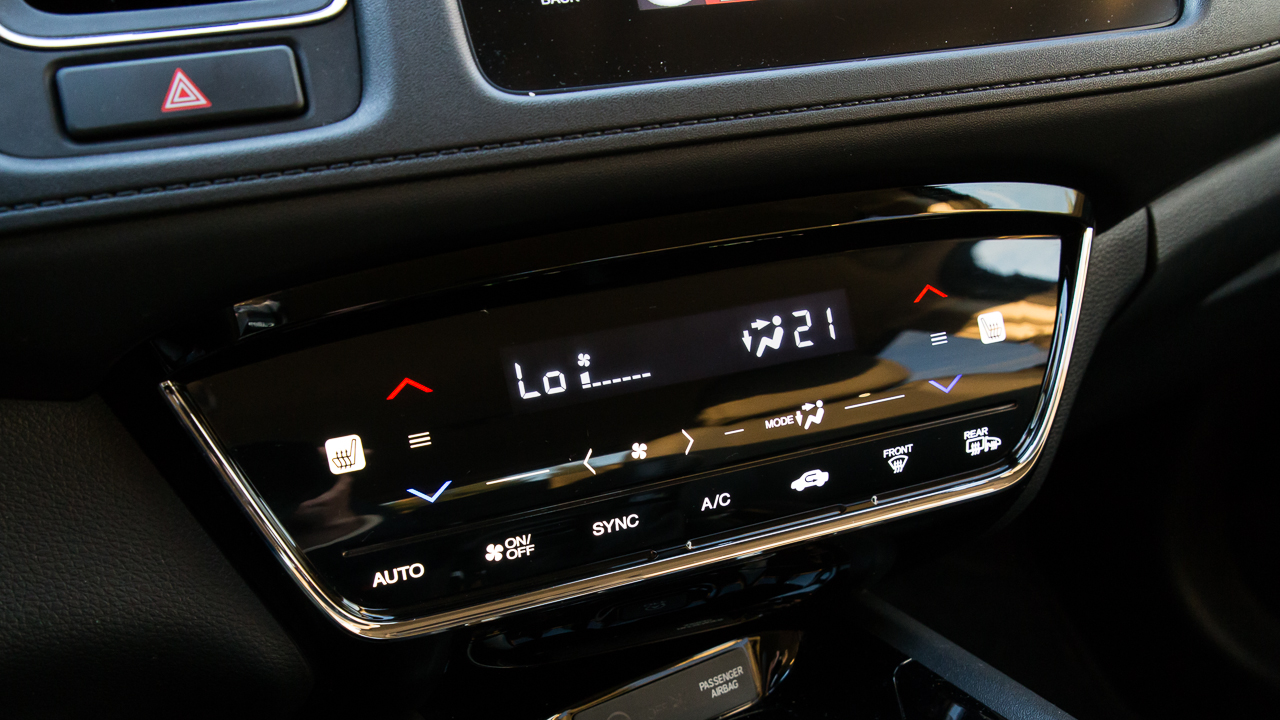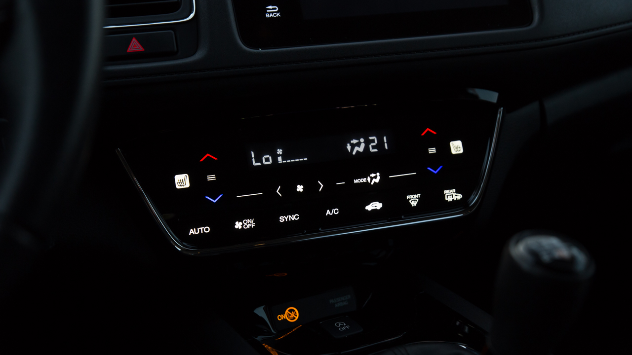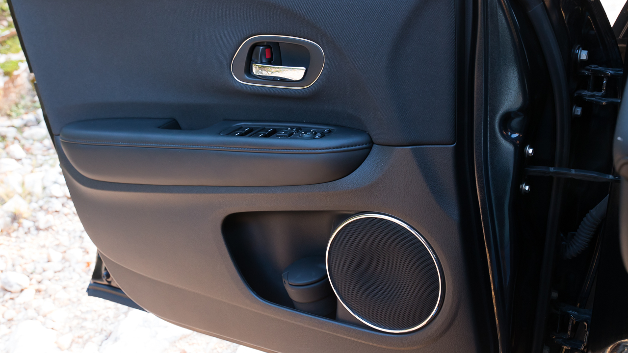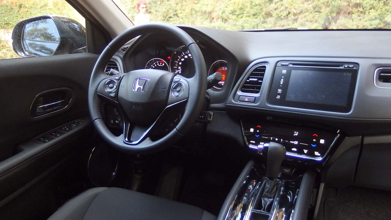 Στο εσωτερικό του Honda H-RV προτεραιότητα σε αυτή την ανανέωση δόθηκε στην άνεση αυτών που βρίσκονται στα δύο εμπρός καθίσματα. Τα τελευταία ανανέωσαν τη σχεδίαση τους ώστε να γίνουν πιο άνετα και ανατομικά, με νέο αφρώδες υλικό αλλά και διαφορετική σχεδίαση για την πλάτη. Νέες και πιο ποιοτικές είναι και οι επενδύσεις των καθισμάτων κάτι που ισχύει και για εκείνες των θυρών. Το σοφιστικέ και μοντέρνο περιβάλλον που παρουσιάζει το HR-V στο εσωτερικό του σε υποδέχεται θερμά από την αρχή. Το σύγχρονης σχεδίασης ταμπλό με το σχεδόν σκανδιναβικό design κερδίζει τις εντυπώσεις με τη λιτότητα των γραμμών του αλλά και την έλλειψη (στα μάτια τουλάχιστον) των πολλών φυσικών κουμπιών. Η μαύρη γυαλιστερή επιφάνεια στην κεντρική κονσόλα των δύο επιπέδων και η αντίστοιχη όψη του αυτού του τομέα, που συγκεντρώνει μεταξύ άλλων τα κουμπιά αφής για τον έλεγχο του κλιματισμού, προσδίδουν μια σπορ πολυτέλεια που μπορεί και να μην την περίμενε κανείς από ένα χρηστικό SUV. Ακριβώς από πάνω, σε σωστό ύψος, βρίσκεται η οθόνη αφής του συστήματος πολυμέσων με διαγώνιο στις επτά ίντσες. Γρήγορη στις εντολές του οδηγού και με προσεγμένα γραφικά δεν αφήνει παράπονο από τη χρήση της, ενώ όπως και με όλα τα σύγχρονα συστήματα, ο χρόνος που θα χρειαστεί για να εξοικειωθείτε μαζί της βρίσκεται σε φυσιολογικά όρια.