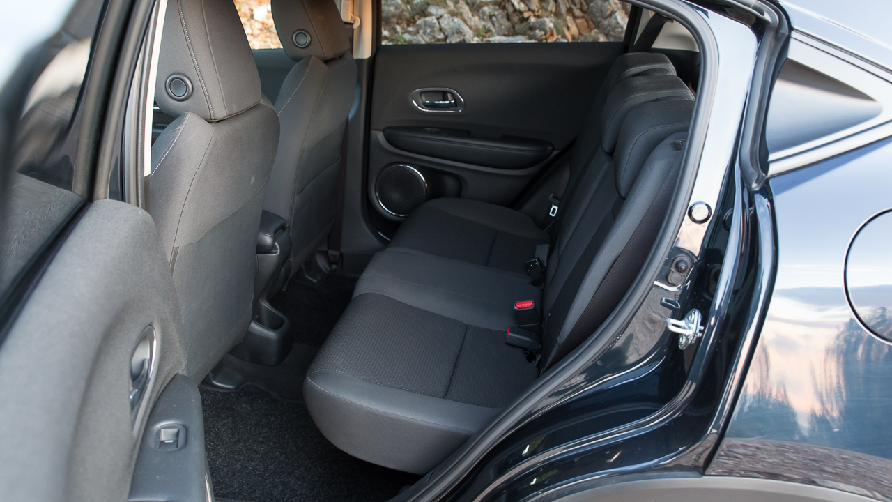 Μιλήσαμε στην αρχή για τους χώρους και επιστρέφουμε τώρα σε αυτούς που αποτελούν ένα από τα ισχυρότερα απτά “χαρτιά” του HR-V. Πέρα από τους εμπρός,. Χωρίς κανένα πρόβλημα θα βολευτούν στην καμπίνα του SUV της Honda και δύο ακόμη επιβαίνοντες σχεδόν ανεξάρτητα από την διάπλαση τους. Ο χώρος για τα πόδια είναι άπλετος, όπως και για τα κεφάλια τους, ενώ αν έχουν φυσιολογικές διαστάσεις, ανάμεσα τους θα κάτσει και ένα τρίτο άτομο χωρίς ιδιαίτερα προβλήματα. Οι Ιάπωνες έχουν εκμεταλλευτεί εξαιρετικά τα 4,33 μ. του μήκους του H-RV προσφέροντας μια πολύ ευρύχωρη καμπίνα για το μοντέλο τους, με τα καλά νέα να μην σταματούν εδώ. Στην έκδοση Elegance του μοντέλου της δοκιμής ο χώρος των αποσκευών φτάνει στο εντυπωσιακό νούμερο των 470 λίτρων (448 στην στάνταρ έκδοση), αν συμπεριληφθεί σε αυτό το νούμερο και ο όγκος του υποδαπέδιου χώρου -393 χωρίς αυτόν και 431 για την στάνταρ έκδοση.