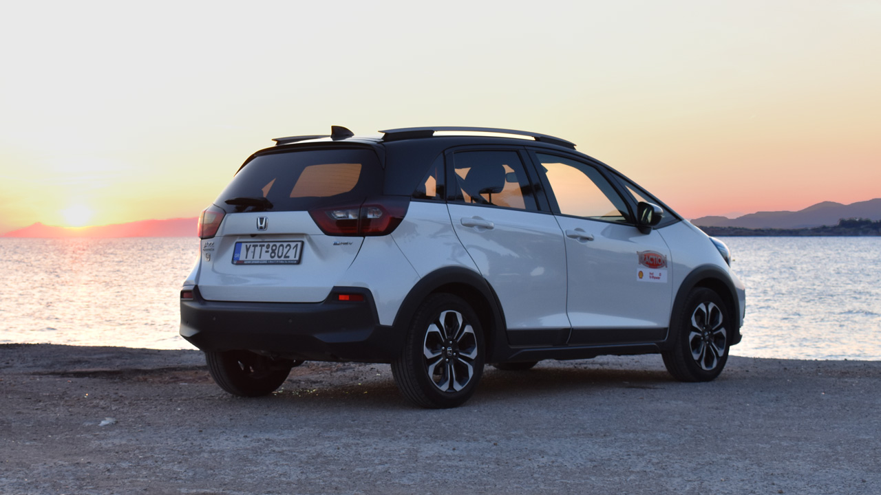 Το υβριδικό Honda Jazz e:HEV στην πόλη “παίζει” μπάλα εντός έδρας, κινείται σαν ηλεκτρικό, “καίει” ελάχιστη βενζίνη και εντυπωσιάζει με την ηχομόνωση. Εκτός πόλης, οι επιβάτες θα ταξιδέψουν σχετικά άνετα και μοναδική αρνητική έκπληξη θα είναι οι ανηφόρες στον αυτοκινητόδρομο. Εκεί ο οδηγός θα πατήσει περισσότερο το γκάζι και ο κινητήρας θα “δηλώσει” παρών με έναν αρκετά θορυβώδη τρόπο. Κατά τα άλλα, το τιμόνι έχει καλή αίσθηση (θα θέλαμε στον στάνταρ εξοπλισμό την δερμάτινη επένδυση της στεφάνης) και είναι ελαφρύ, ενώ τα φρένα είναι αποδοτικά και δεν φαίνεται να επηρεάζονται από τη λειτουργία ανάκτησης πέδησης καθώς η αίσθησή τους ικανοποιεί. Η ανάρτηση προσφέρει πολύ καλή ποιότητα κύλισης. Μόνο στις εγκάρσιες και κοφτές ανωμαλίες του οδοστρώματος, η απόσβεση προδίδεται και οι κραδασμοί περνούν στο εσωτερικό. Bonus στην περίπτωση της Crosstar έκδοση η αυξημένη απόσταση από το έδαφος, η οποία επιτρέπει πιο “ξέγνοιαστα” περάσματα σε εκτός ασφάλτου εξορμήσεις.