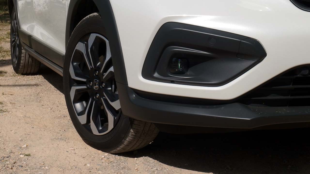 Ιδιαίτερη έμφαση οφείλουμε να δώσουμε στην εξωτερική εμφάνιση του Honda Jazz Crosstar, άλλωστε αυτή είναι και η σημαντικότερη διαφορά της συγκεκριμένης έκδοσης. Με την πρώτη ματιά γίνεται άμεσα αντιληπτή η αυξημένη απόσταση από το έδαφος, η οποία φτάνει αισίως στα 152 χλστ. (+22 χλστ). Ελαφρώς αυξημένες είναι και οι διαστάσεις του αμαξώματος, με το μήκος να φτάνει τα 4.090 χλστ. (+ 46 χλστ.), το πλάτος τα 1.725 χλστ. (31 χλστ.) και το ύψος τα 1.556 χλστ. (30 χλστ.). Πέρα από τις διαστάσεις, το εμπρός και το πίσω μέρος διαφέρουν με τους ανασχεδιασμένους προφυλακτήρες. Η έκδοση Crosstar φέρει επίσης, ασημί καλύμματα στους καθρέφτες και η crossover “διάσταση” δίδεται από τα άβαφα πλαστικά μέρη στο κάτω μέρος, περιμετρικά του αμαξώματος, που δίνουν μία διχρωμία και τις ράγες στην οροφή. Όπως και στην περίπτωση του “απλού” Jazz, στο πίσω μέρος υπάρχει το “e:HEV” που μαρτυρά την υβριδική “φύση” του μοντέλου, ενώ ενδιαφέρον σχεδιαστικά είναι το πολύ λεπτό πάχος στις κολώνες του παρμπρίζ (που ευνοούν την περιμετρική ορατότητα του οδηγού), τα μεγάλα φωτιστικά σώματα και οι “απαλές” σχεδιαστικές γραμμές.